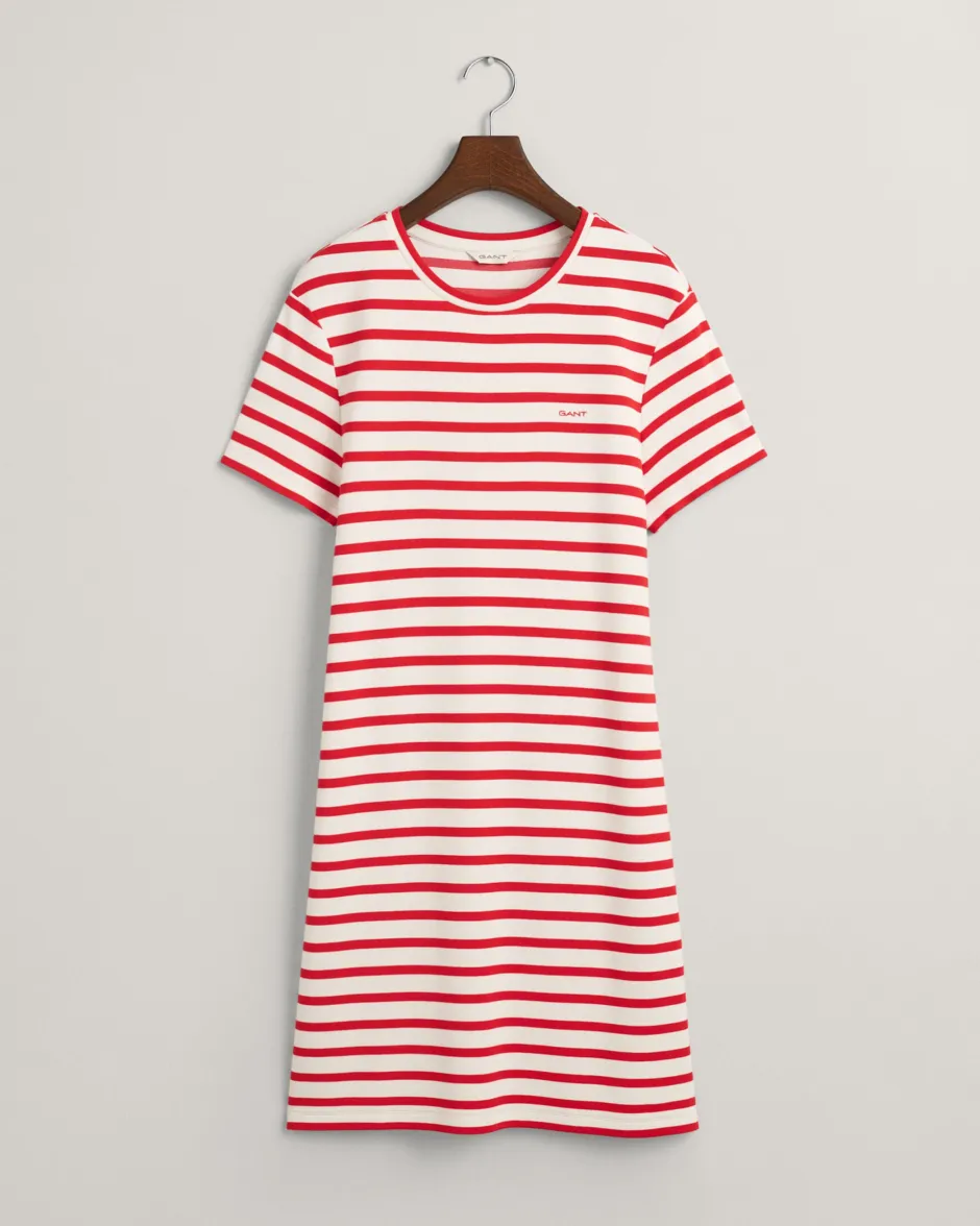 Yksinkertaisen tyylikäs raidallinen paitamekko. Rinnassa Gant -logo.