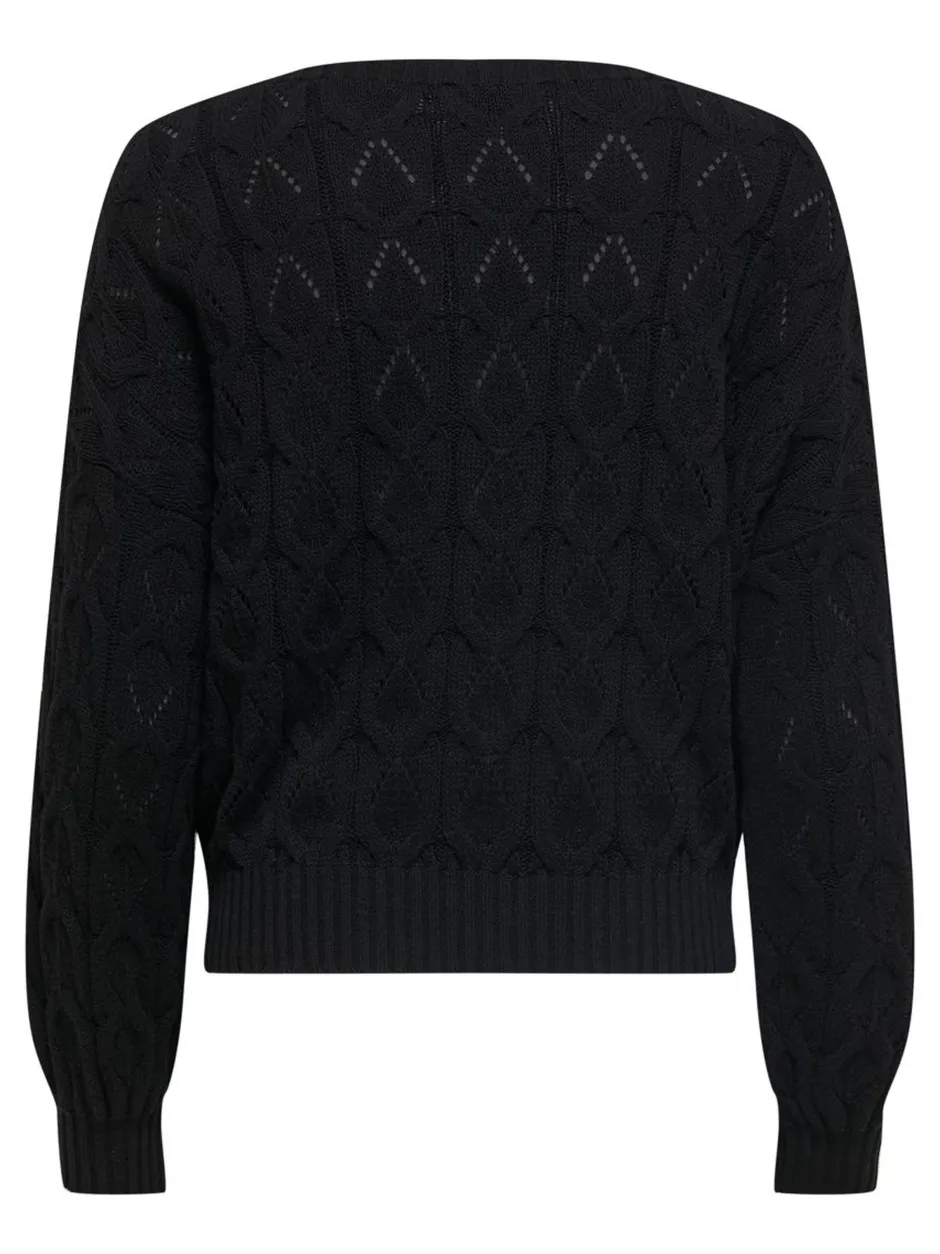Onlyn puuvillainen neulepaita, jossa on kaunis kuvioitu pinta. Avara pääntie ja joustavat ribbneulotut resorit hihansuissa ja helmassa.