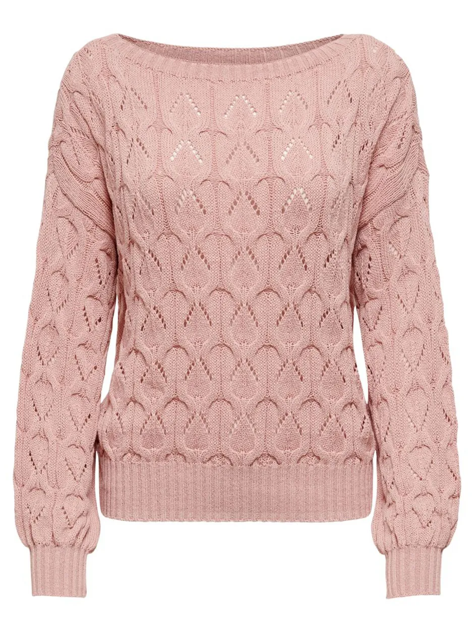 Onlyn puuvillainen neulepaita, jossa on kaunis kuvioitu pinta. Avara pääntie ja joustavat ribbneulotut resorit hihansuissa ja helmassa.