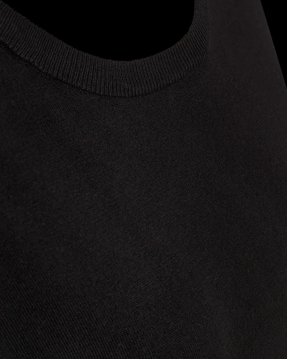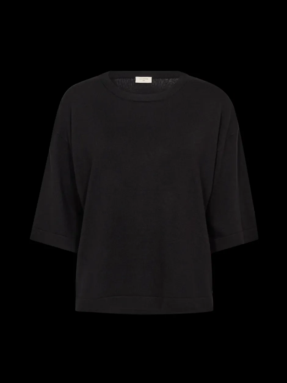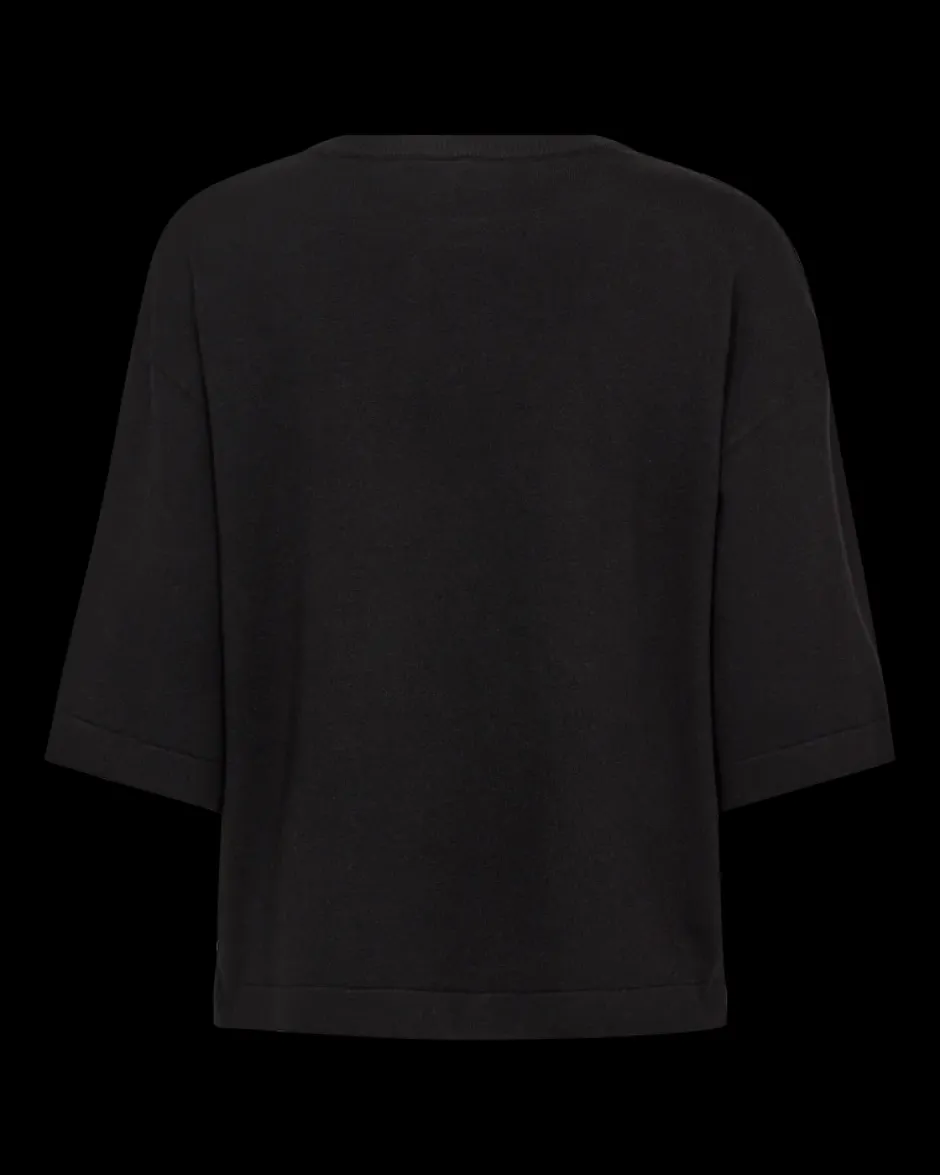 Freequentin pusero pehmeästä, hienoneuloksellisesta materiaalista. Puserossa on yksinkertainen siluetti, jossa on joustinneulos, pyöreä pääntie ja leveät hihat, joissa on lasketut olkapäät, jotka korostavat puseron väljää istuvuutta.
