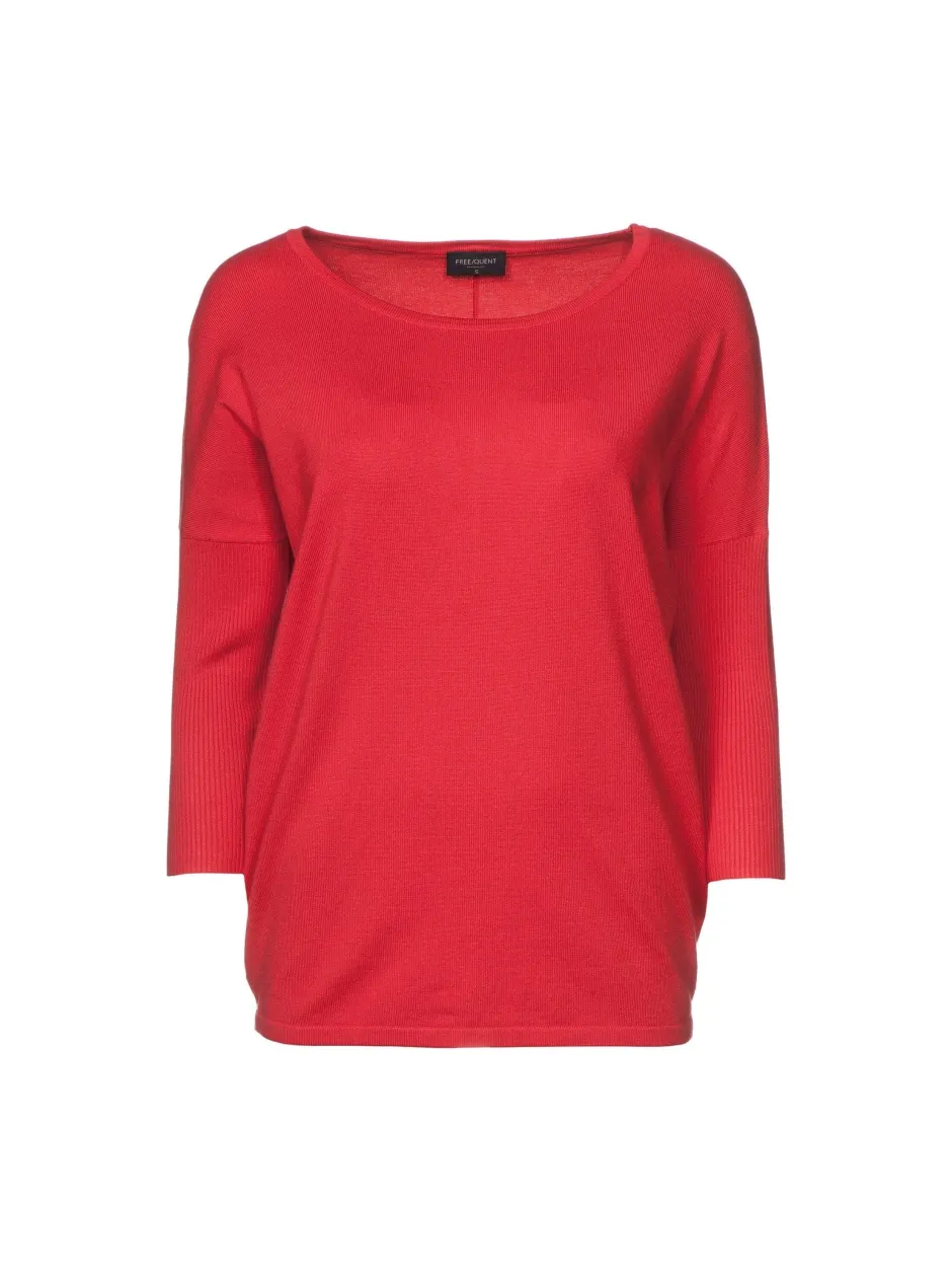 Freequentin yksivärinen neulepusero vajaamittaisilla ribneuloshihoilla. O-pääntie, malliltaan kapenee helmaan. Koossa S pituus n.65 cm.