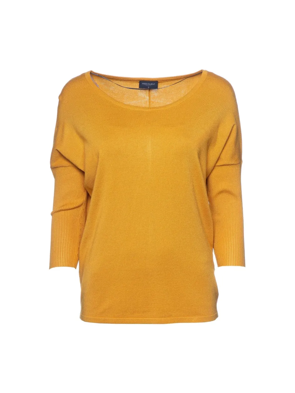 Freequentin yksivärinen neulepusero vajaamittaisilla ribneuloshihoilla. O-pääntie, malliltaan kapenee helmaan. Koossa S pituus n.65 cm.
