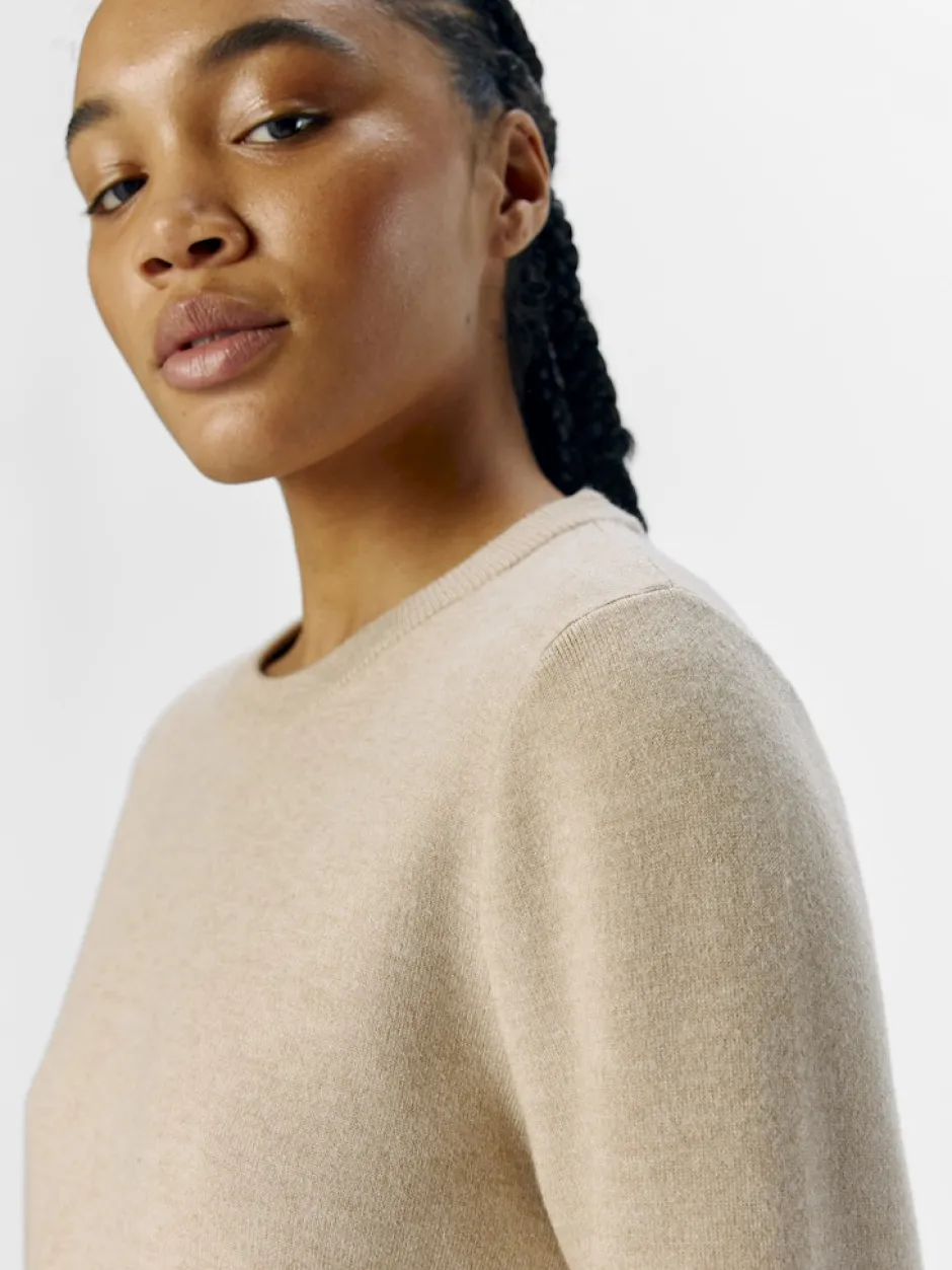 Objectin neule pehmeästä materiaalista. Neuleessa on pyöreä pääntie ja normaali istuvuus.