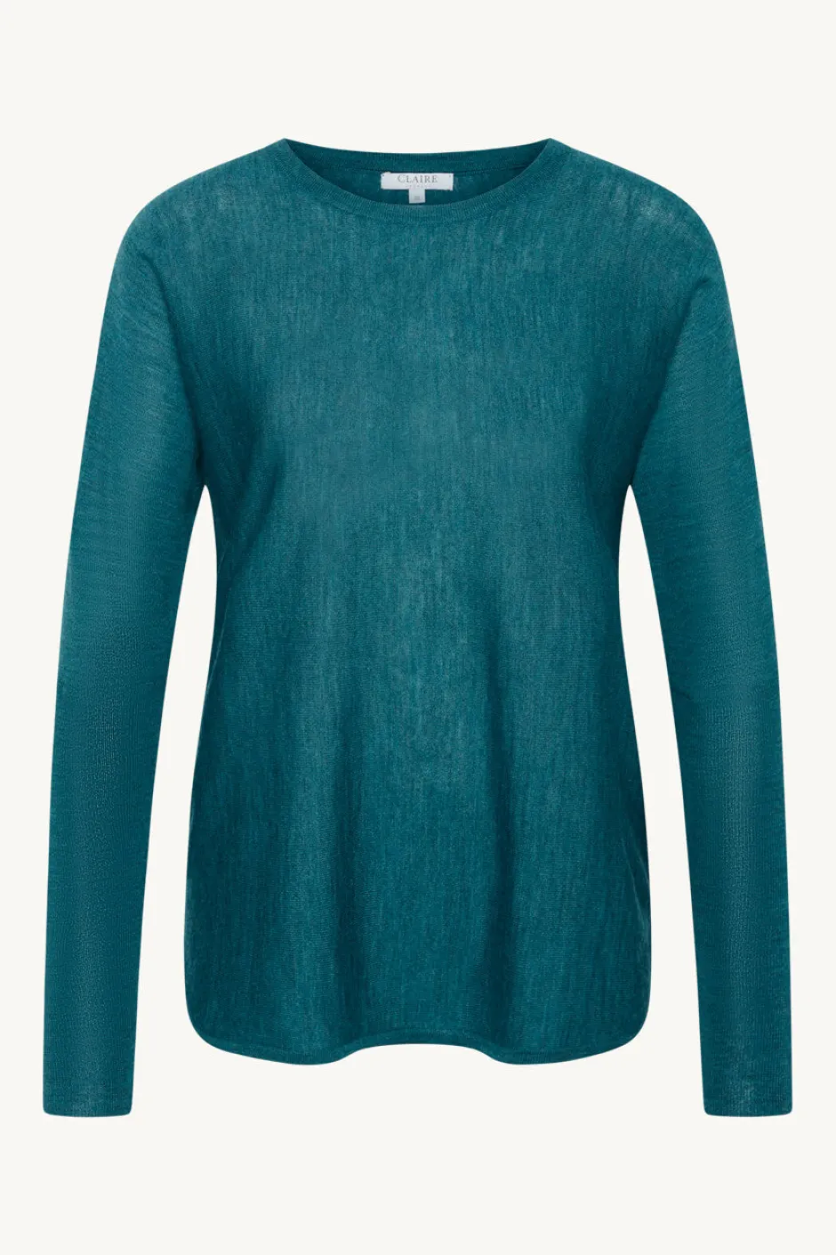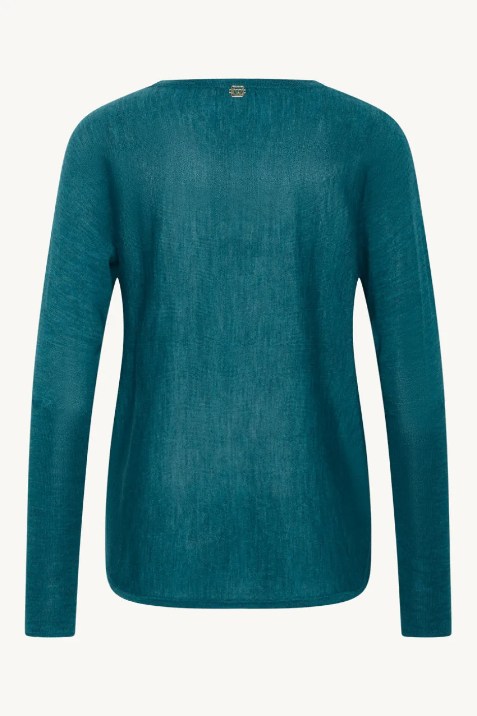 Pehmeä, kevyt neule, jossa resorihihat. Kauniisti kaareva helma.