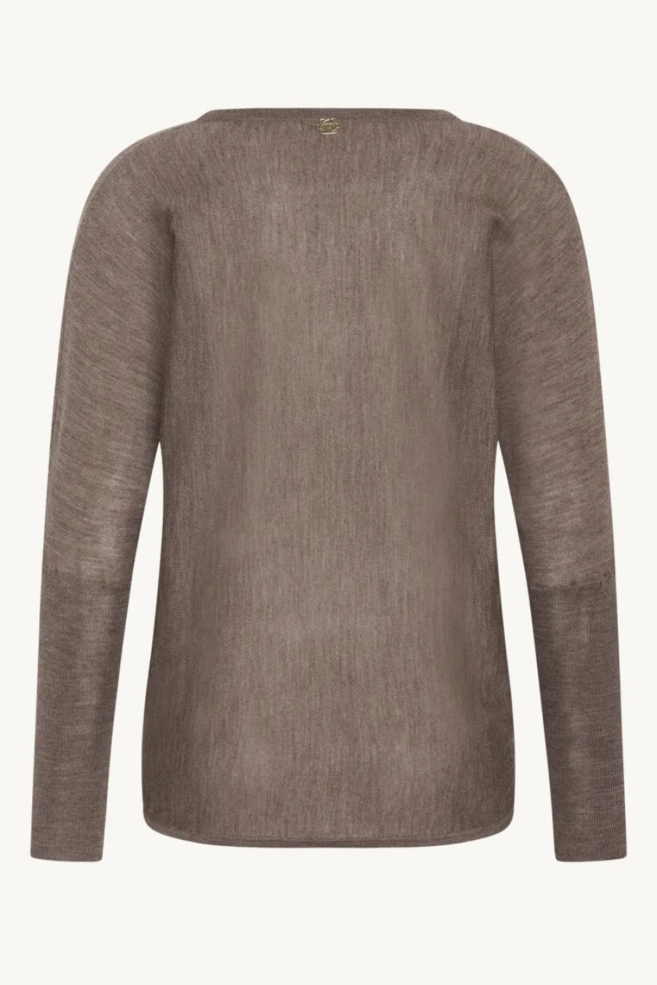 Pehmeä, kevyt neule, jossa resorihihat. Kauniisti kaareva helma.