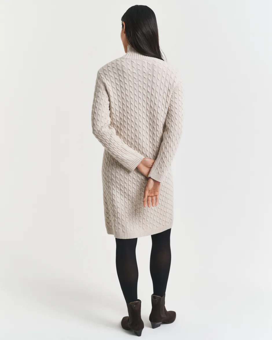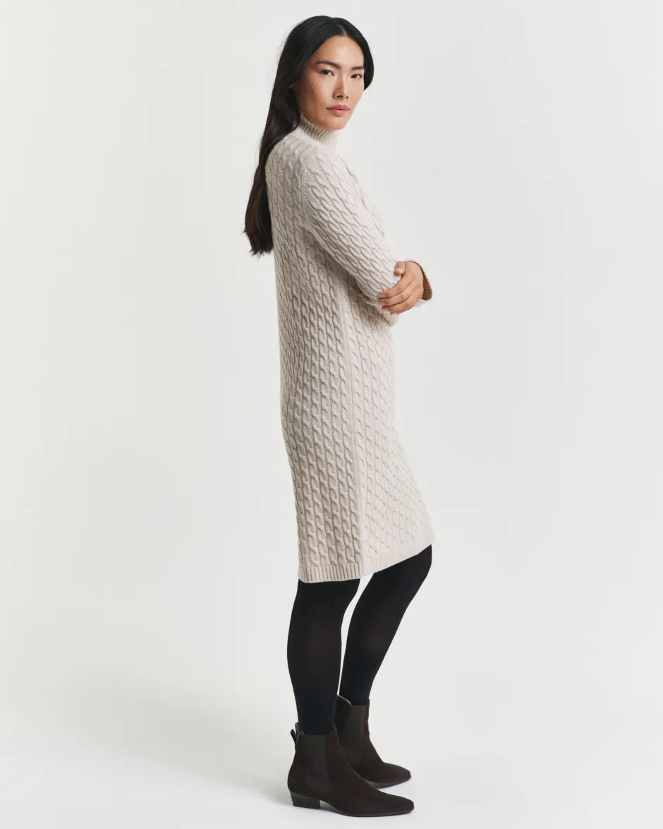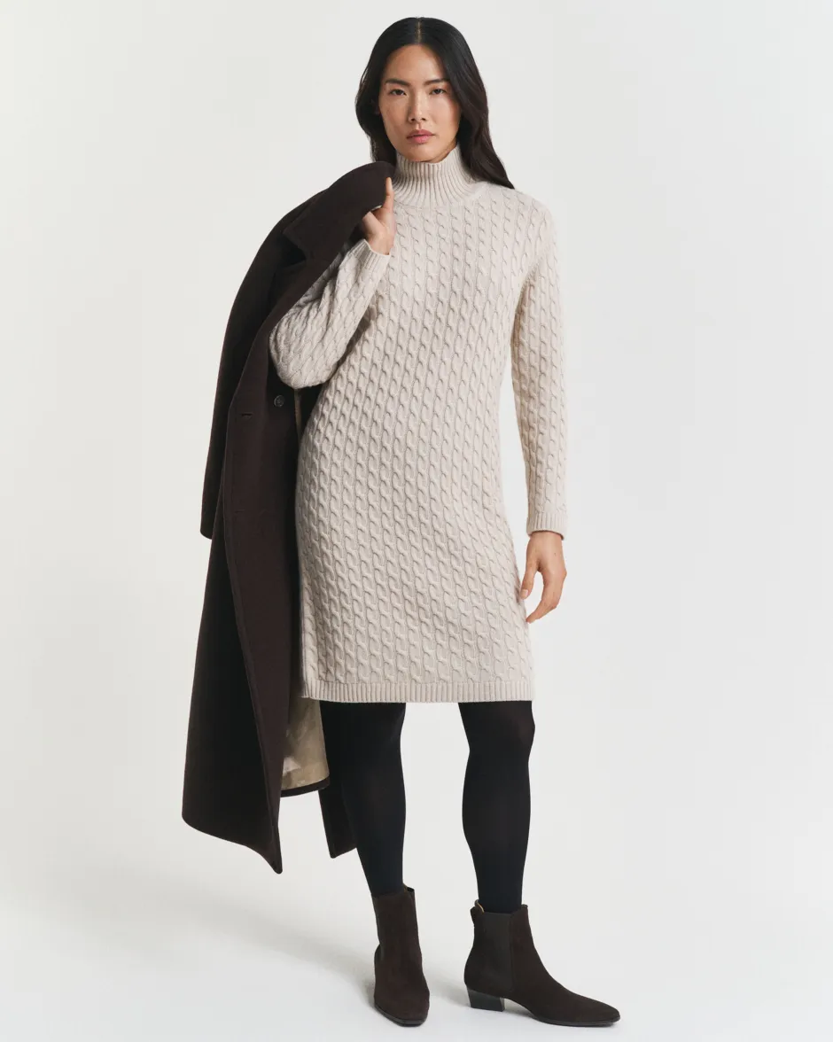 Pehmeä ja laadukas villan, viskoosin ja kašmirin sekoite tekee tästä mekosta ehdottoman valinnan kylmiin vuodenaikoihin. Hieman polven alapuolelle ulottuvassa mekossa on väljä mitoitus, klassinen poolokaulus palmikkoneulepinta sekä joustinneulereunat pääntiessä, helmassa ja hihansuissa. Vaate on mitoitukseltaan väljä. Jos suosit tiukempaa mallia, kannattaa valita pienempi koko.