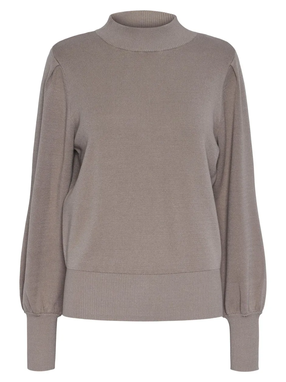 – Korkeakauluksinen neulepusero – Osa yhteensopivaa settiä – Pitkät pallohihat – Leveät resorit hihansuissa – Resorireunat – Laskostetut olkapäät – Cosy fit