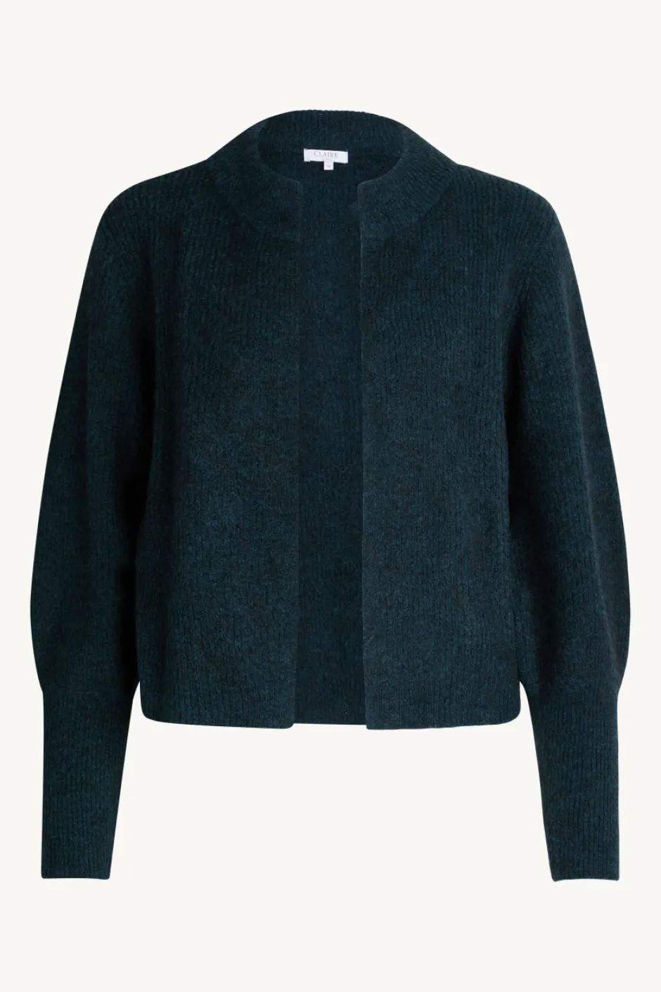 Naisten jakkumainen neuletakki pehmeää, joustavaa mohairia. Lyhyt, vyötärölle ulottuva malli, pallohihat, pitkät resorit hihansuissa.
