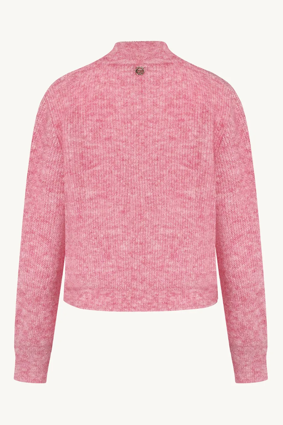 Naisten jakkumainen neuletakki pehmeää, joustavaa mohairia. Lyhyt, vyötärölle ulottuva malli, pallohihat, pitkät resorit hihansuissa.