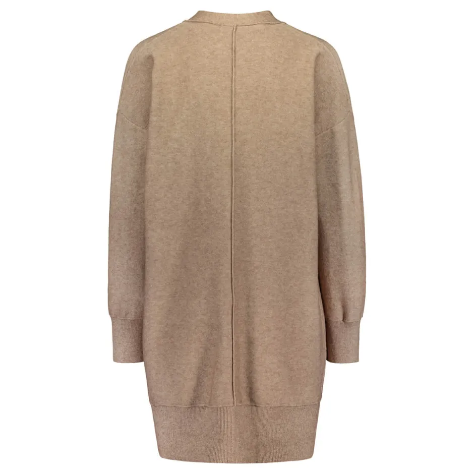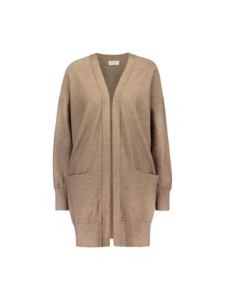 Freequentin pitkä, pehmeä neuletakki. Edestä avoin, ei kiinnityksiä. Avotaskut ja osittain päällepäin ommellut saumat. Leveät resorit hihoissa sekä helmassa. Koossa S pituus n.87 cm. Monikäyttöinen neule töihin ja vapaa-aikaan..