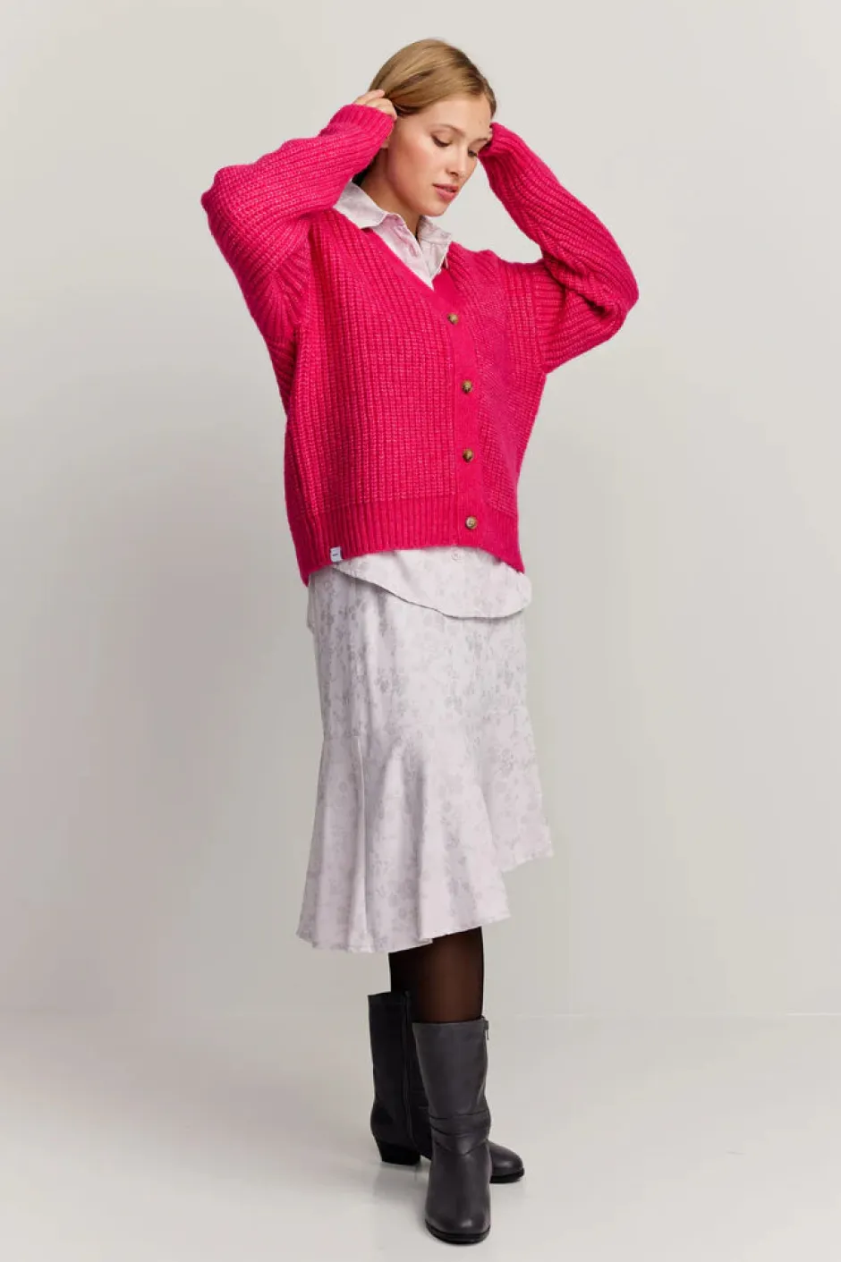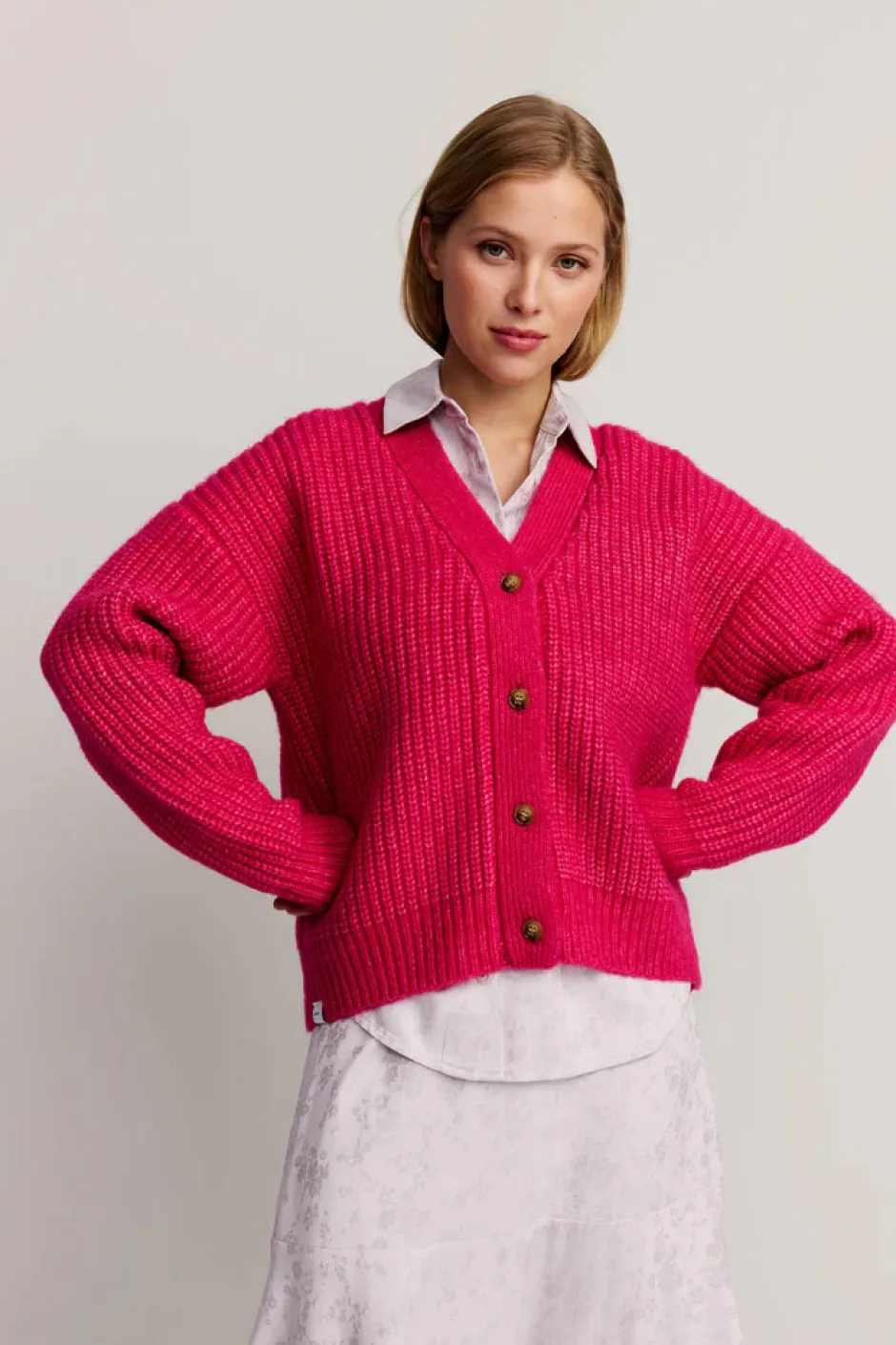 Makia Florence Cardigan on yhdistelmä ajatonta skandinaavista muotoilua ja laadukkaita materiaaleja. Valmistettu 68 % villasta, 27 % nylonista ja 5 % elastaanista, mikä tekee neuleesta pehmeän, joustavan ja lämpimän. Napillinen malli ja rennon klassinen leikkaus tekevät siitä helposti yhdisteltävän sekä arkeen että rentoihin vapaa-ajan asuihin.