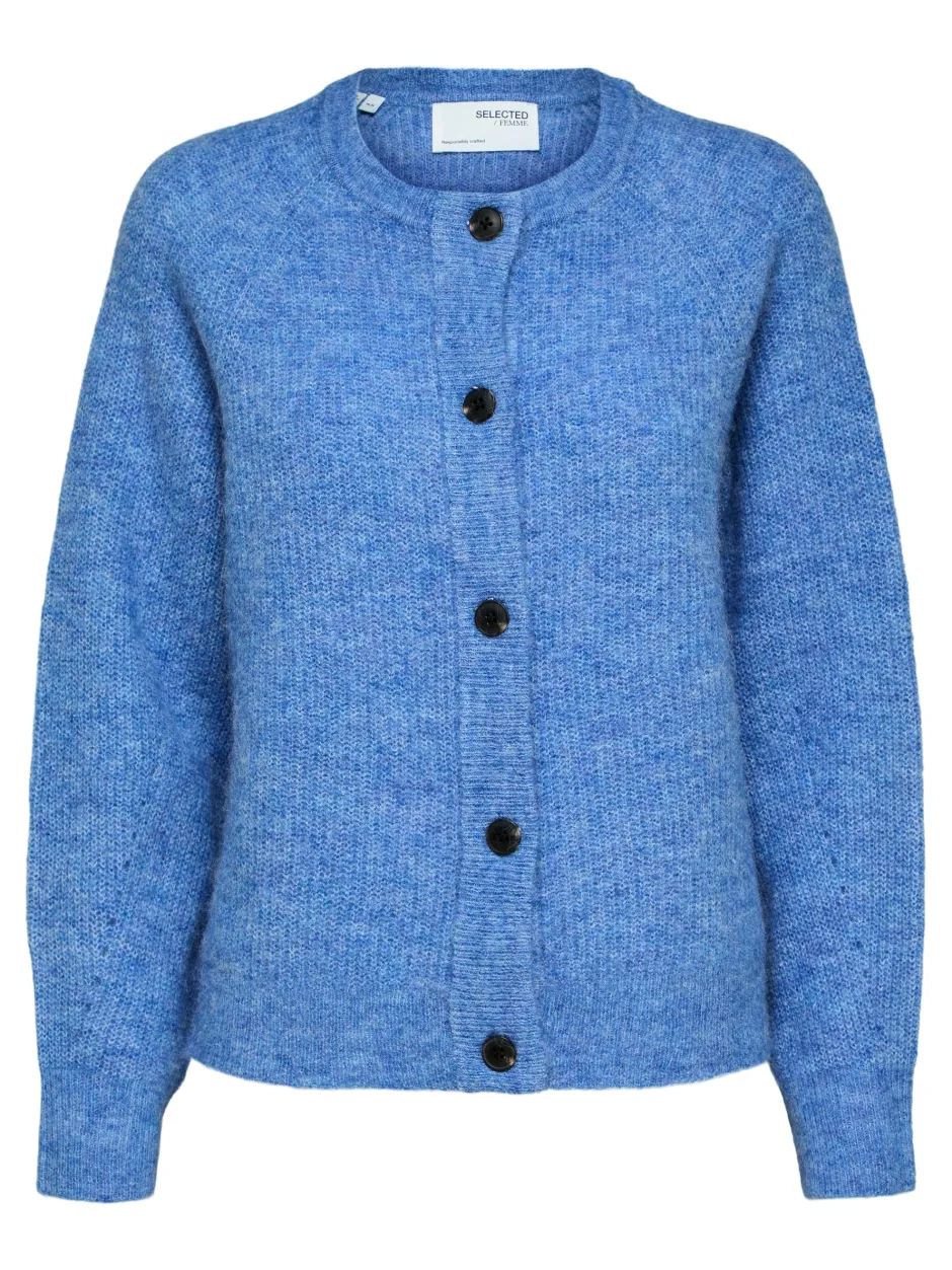 Selected Femmen ihastuttava neuletakki, joka on valmistettu pehmeästä ja laadukkaasta villasekoitteesta. Neulottu pinta, .pyöreä pääntie ja näyttävät napit edessä.