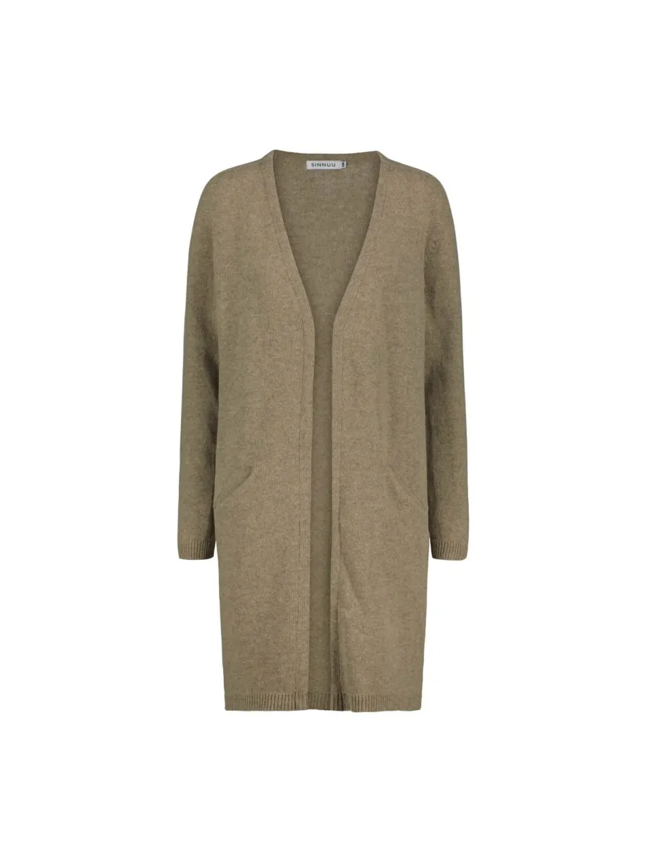 Tyylikäs ja lämmin villaneuletakki. Pitkä malli. Valmistettu 100% villasta.