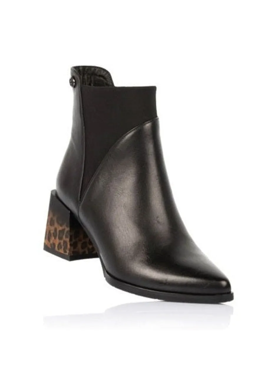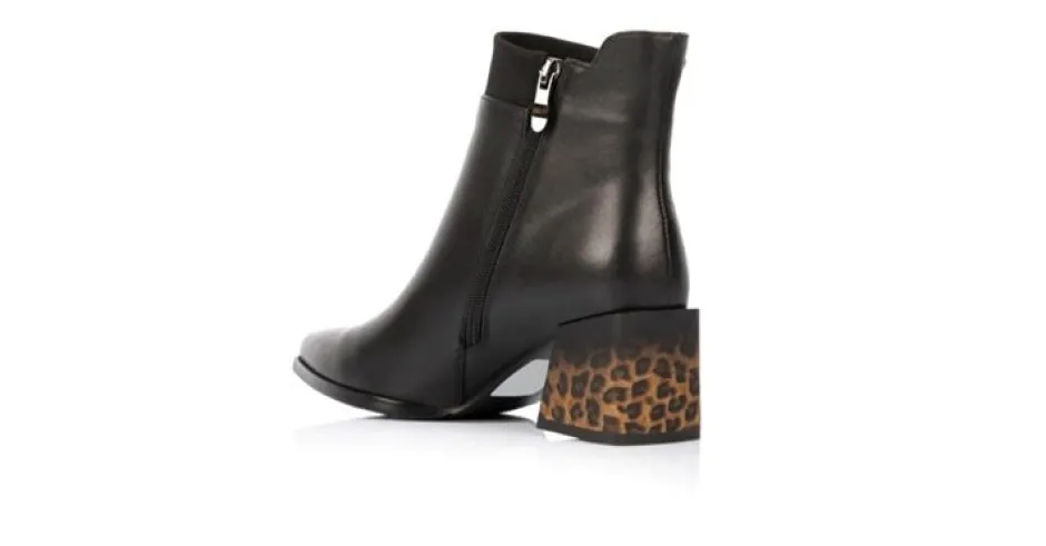 Kaunis naisten nahkanilkkuri, jossa tukeva paksu korko, kapeneva kärki ja vetoketju varressa. Tukevassa korossa on trendikäs leopardikuosi, joka tuo persoonallisen ilmeen tyylikkäälle kengälle – pue monipuolisesti housujen, hameiden ja mekkojen kanssa!