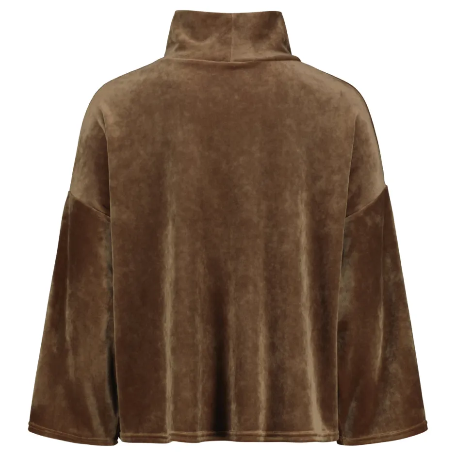 Sinnuun naisten samettipintainen pusero tuo pehmeää ja ylellistä tuntua arkeen. Samettipaidan suora ja väljästi istuva malli, sekä pehmeä pinta tekevät paidasta miellyttävän pitää. Paidassa on väljä, korkea kaulus, leveät hihat sekä laskettu olkasauma, joka korostaa paidan rentoa ja huoletonta tyyliä. Tyylikäs sävy on helppo yhdistää eri asuihin ja yksinkertainen malli yhdistyy helposti niin kotiasuihin kuin rentoihin menoihin.