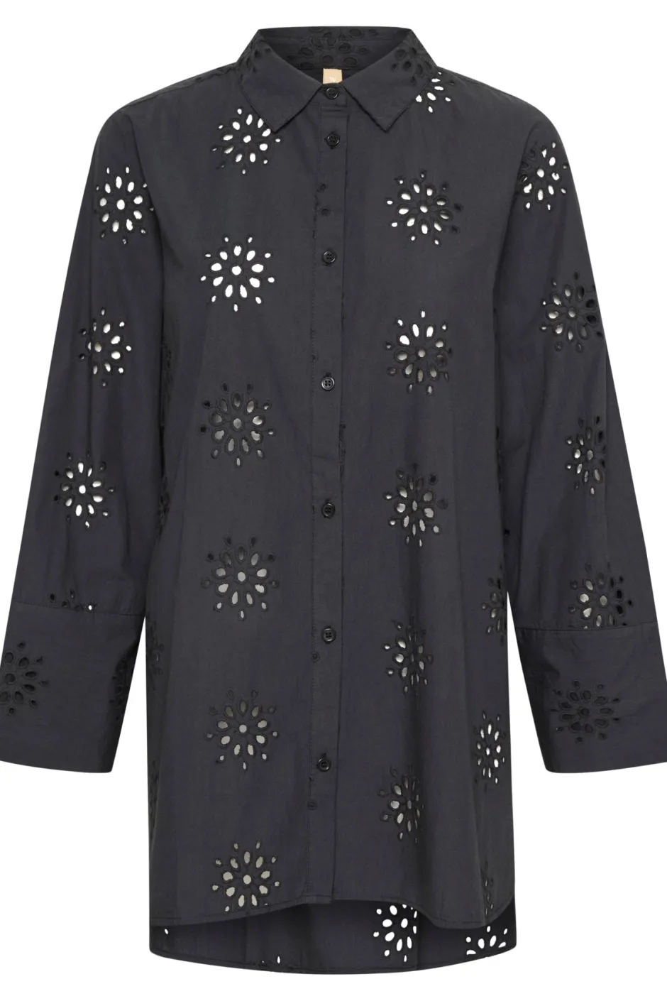 Kaunis paita laadukkaasta puuvillasta. Paidassa on leveät hihat, pidempi takaa, napitus ja söpöt brodeeratut yksityiskohdat.