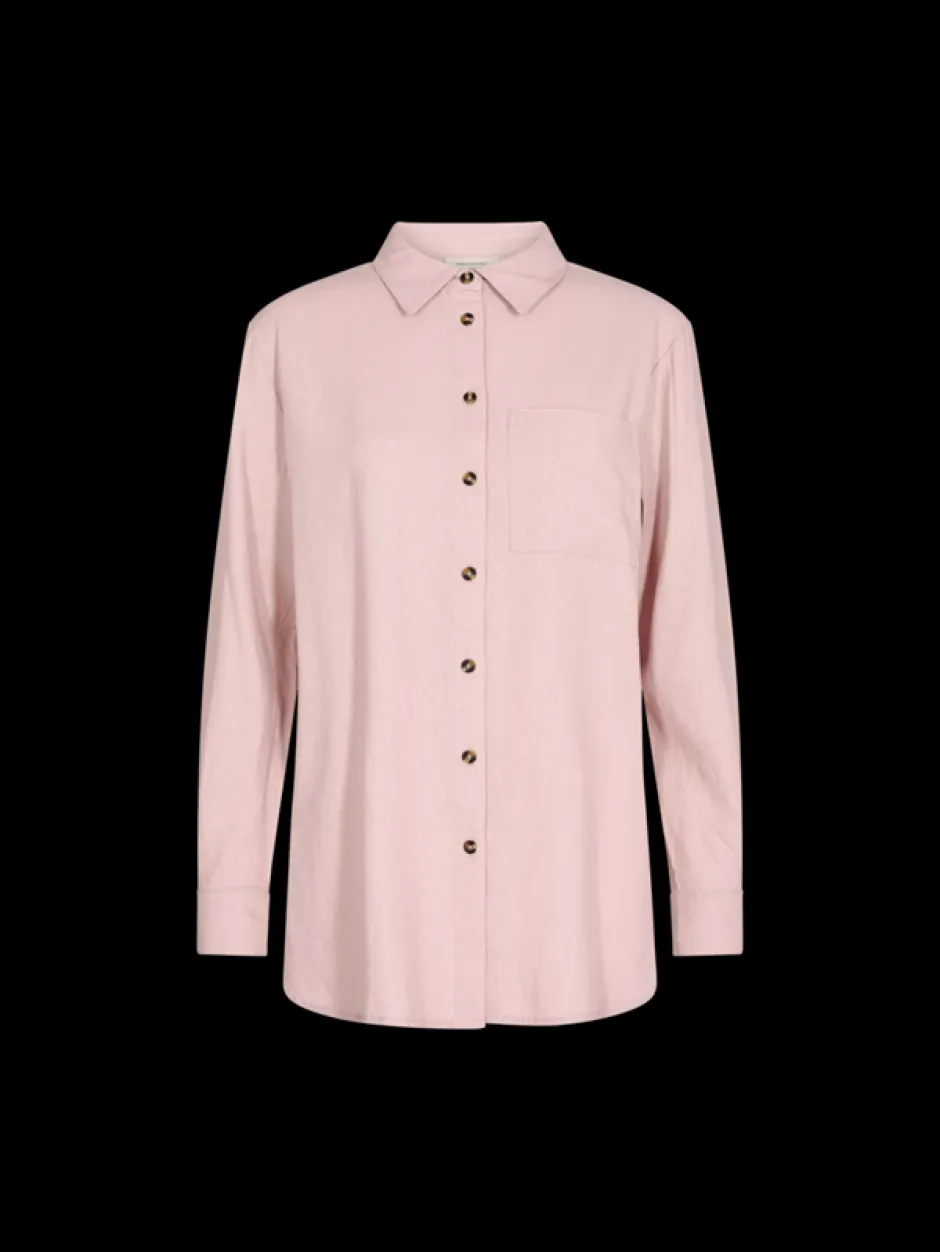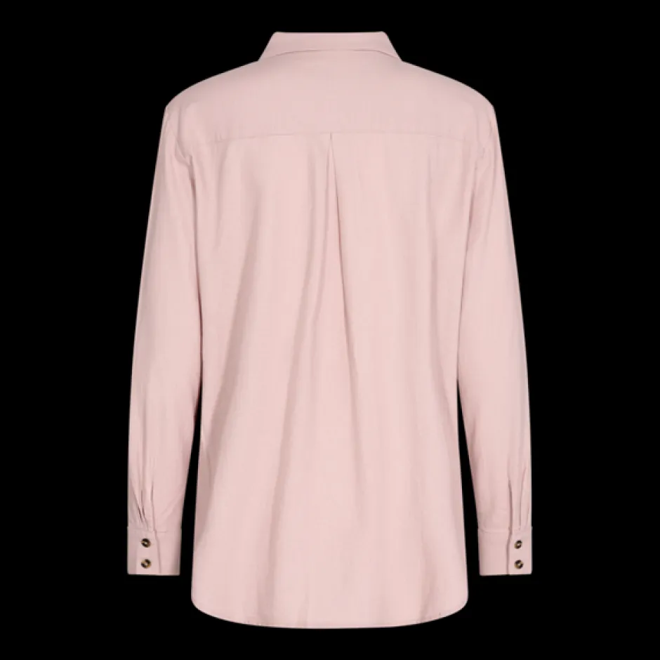 Viileän tuntuinen ja hengittävä pitkähihainen naisten kangaspaita. Paitakaulus, edessä napitus ja hihansuissa napilliset kalvosimet. Yksi rintatasku. Sivuilla helmassa halkiot. Takana kaarrokkeen reunassa vastalaskos väljyysvarana. Kutistuu mahdollisesti 5% pesussa.