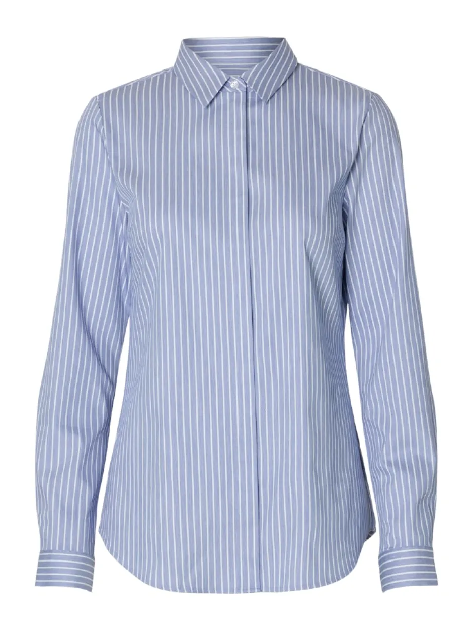 Selected Femmen raidallinen paita yhdistää klassisen muotoilun ja modernin istuvuuden. Paita on valmistettu miellyttävästä ja hengittävästä puuvillakankaasta, joka tuntuu pehmeältä päällä ja mukautuu arjen eri tilanteisiin – työpäivästä kaupunkikävelyyn tai vapaa-ajan menoihin.