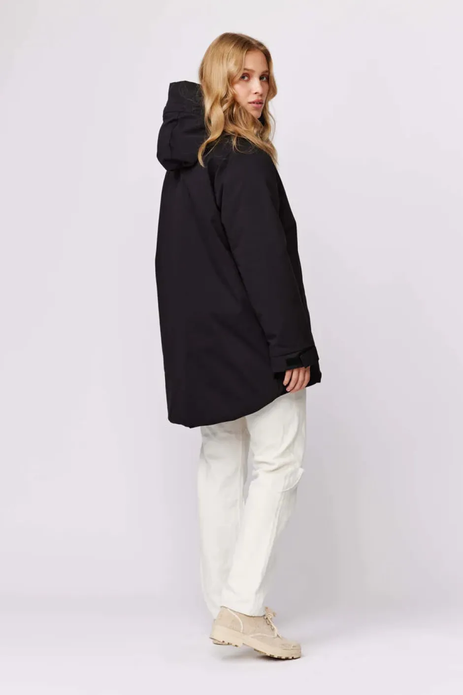 Lyhyt, rennonmallinen talvitakki. A-linjaisessa Aire-parkassa on snorkkelihuppu, joka suojaa tuulelta. Parkan ulkokuori on valmistettu 60 % puuvillasta ja 40 % Soronasta®, osittain kasvipohjaisesta polymeeristä. 100 % kierrätetystä polyesteristä valmistettu vuori tarjoaa lisälämpöä. Aire-parkan helma on hieman pidempi takaa.