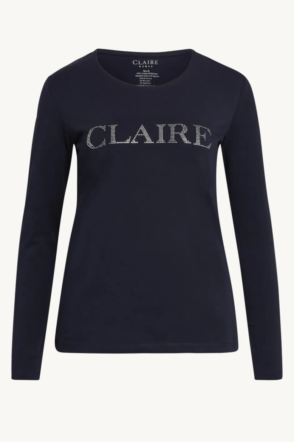 Clairen pitkähihainen trikoopusero. O-pääntie, edessä kimaltava strassilogo. Koossa 38 pituus n.64 cm.