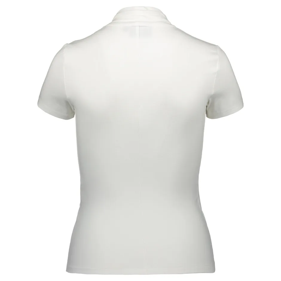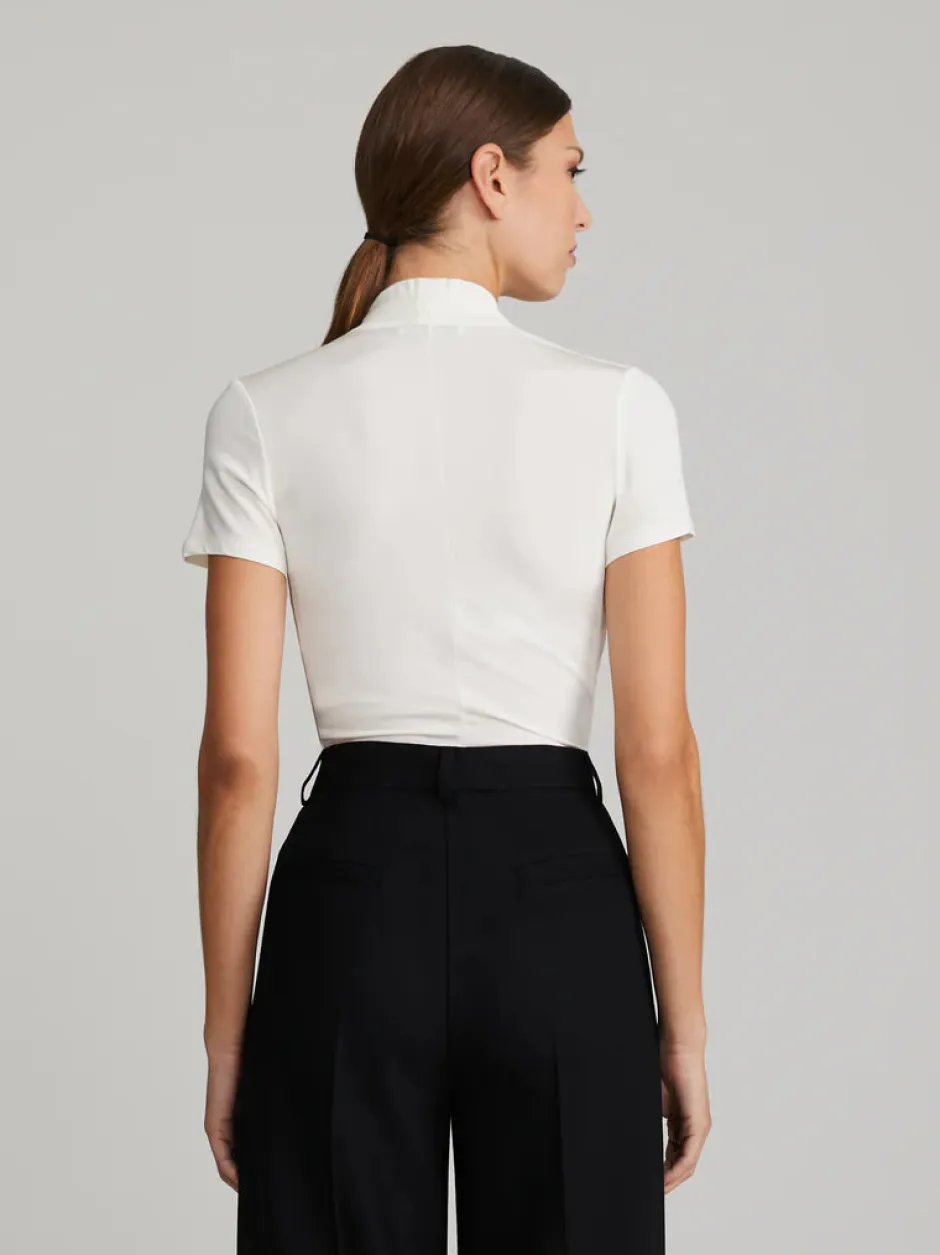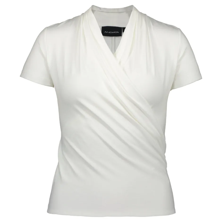 Andiatan lyhythihainen pusero joustavaa ja napakkaa trikoota. Kankaat limitetty edessä, avara pääntie. Koossa S pituus n.55 cm.
