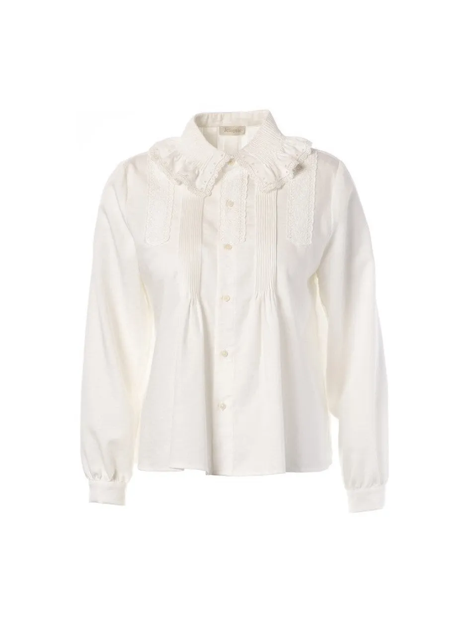 JcSophie ”Joan” Blouse Black hurmaa naisellisen ja ajattoman siluetin yhdistelmässä: rento oversized-leikkaus ja ylelliset romanttiset yksityiskohdat, kuten brodeerattu boordikaulus ja herkkä pitsisomistus yläosassa. Materiaalina viskoosi–polyesteriyhdistelmä (46/40 % ) tarjoaa pehmeyttä ja laskeutumista, ja pusero istuu mukavasti ilman kiristävyyttä