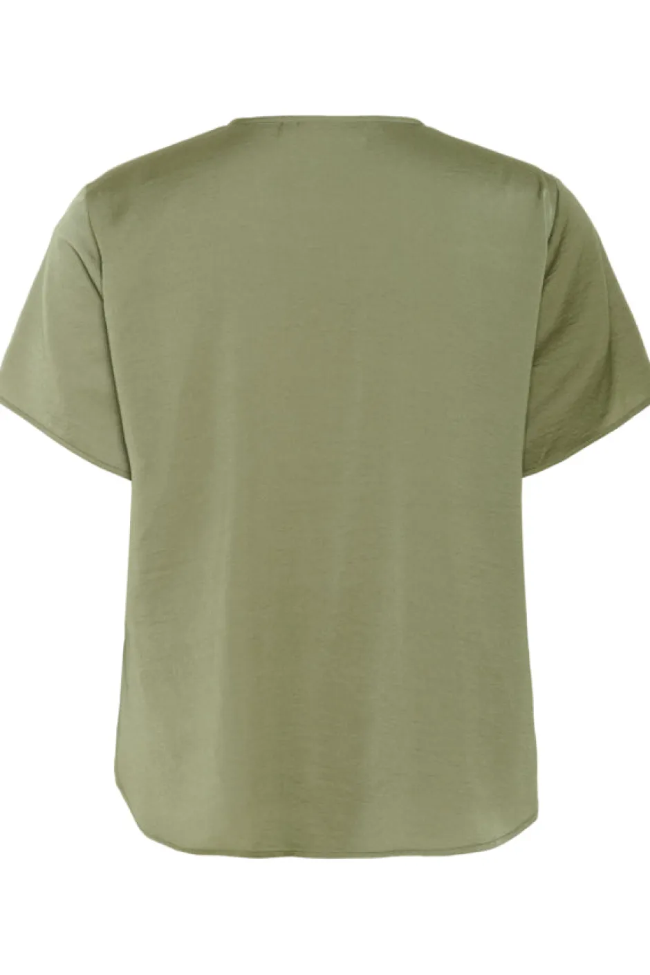 Puseron V-pääntie tuo ryhtiä ja naisellisuutta, kun taas etuosan laskostus ja kevyt solmukohta luovat kauniin siluetin. Lyhyet hihat ja pehmeä, miellyttävä materiaali takaavat käyttömukavuuden koko päivän ajan.