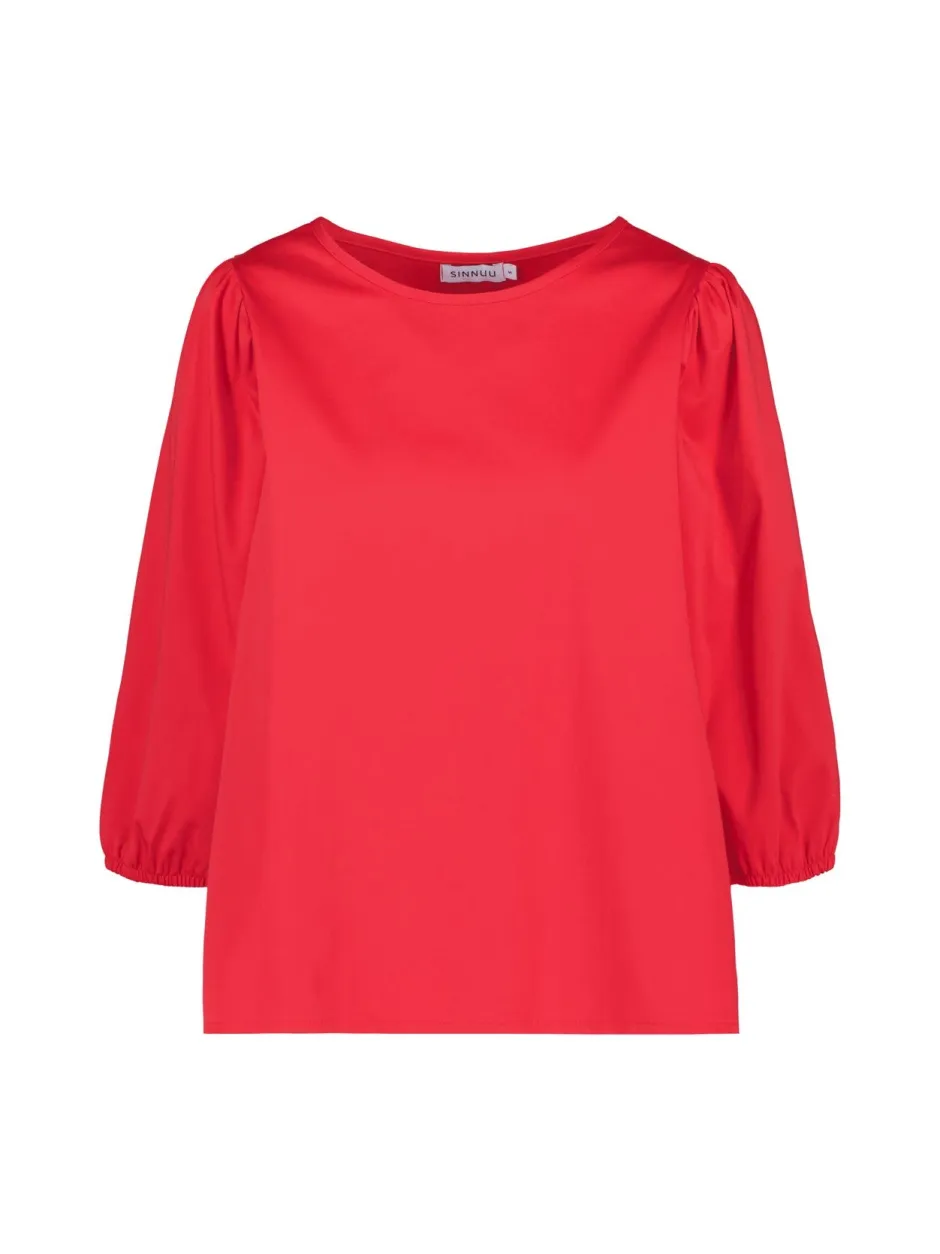 Kotimaisen Sinnuun LEA-pusero on upea valinta niin arkeen kuin juhlaan. Kangaspuserossa on pyöreä pääntie ja 3/4-mittaiset, kauniisti pussittavat hihat. Hihojen istutuksessa on naisellinen rypytys ja hihansuissa kuminauhat. Puserossa on hieman helmaa kohti levenevä malli ja helmassa pienet sivuhalkiot. Tämän puuvillaisen puseron materiaali on ryhdikästä ja sen pinnassa on kaunis, himmeä kiilto. Pieni määrä elastaania lisää puseron käyttömukavuutta ja tekee siitä miellyttävän tuntuisen päällä.