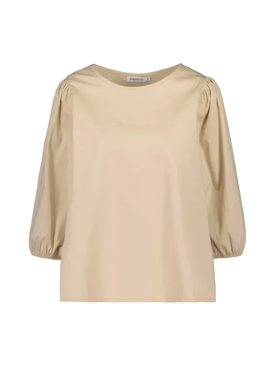 Kotimaisen Sinnuun LEA-pusero on upea valinta niin arkeen kuin juhlaan. Kangaspuserossa on pyöreä pääntie ja 3/4-mittaiset, kauniisti pussittavat hihat. Hihojen istutuksessa on naisellinen rypytys ja hihansuissa kuminauhat. Puserossa on hieman helmaa kohti levenevä malli ja helmassa pienet sivuhalkiot. Tämän puuvillaisen puseron materiaali on ryhdikästä ja sen pinnassa on kaunis, himmeä kiilto. Pieni määrä elastaania lisää puseron käyttömukavuutta ja tekee siitä miellyttävän tuntuisen päällä.