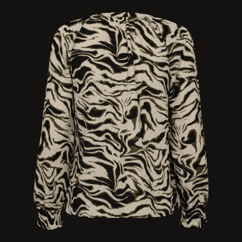 Freequentin monikäyttöinen kuosipusero helpossa ja miellyttävässä mallissa. Puserossa on hyvä hieman väljempi mitoitus, joustava materiaali, o-aukkoinen pääntie nappikiinnityksellä ja pitkät hihat.