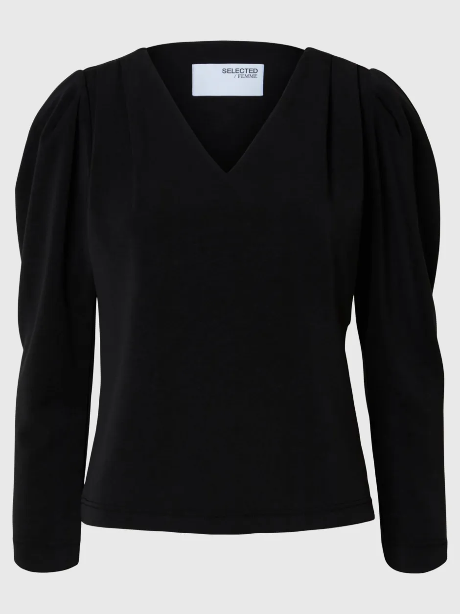 Yksinkertainen mutta tyylikäs pitkähihainen paita. Olkapäillä on kaunista laskostusta.