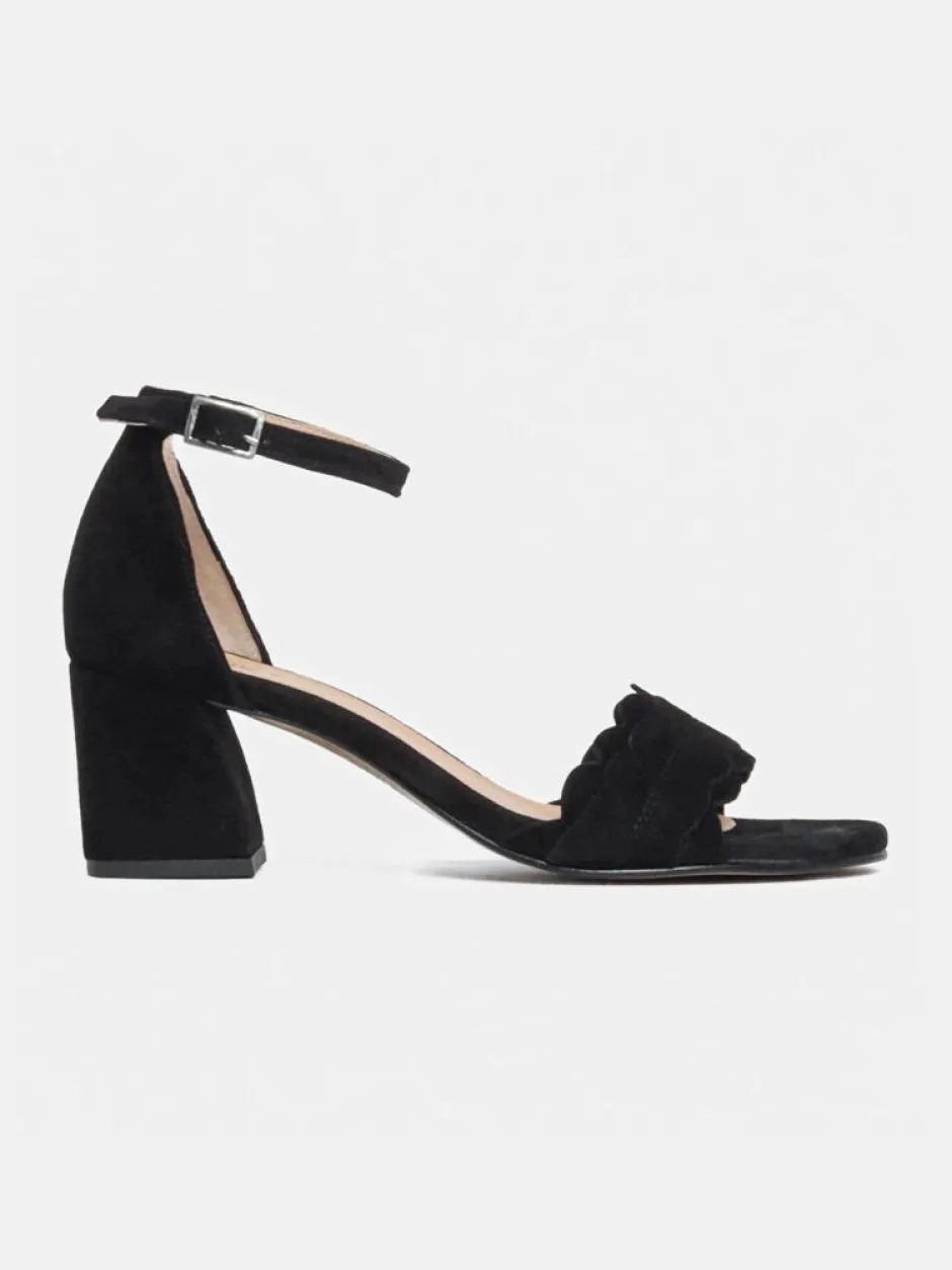 Naisten tyylikkäät mokkanahkaiset korkosandaalit ovat monikäyttöiset ja helposti yhdisteltävissä erilaisiin asukoikonaisuuksiin. Säädettävä nilkkaremmi. Korko n. 6cm