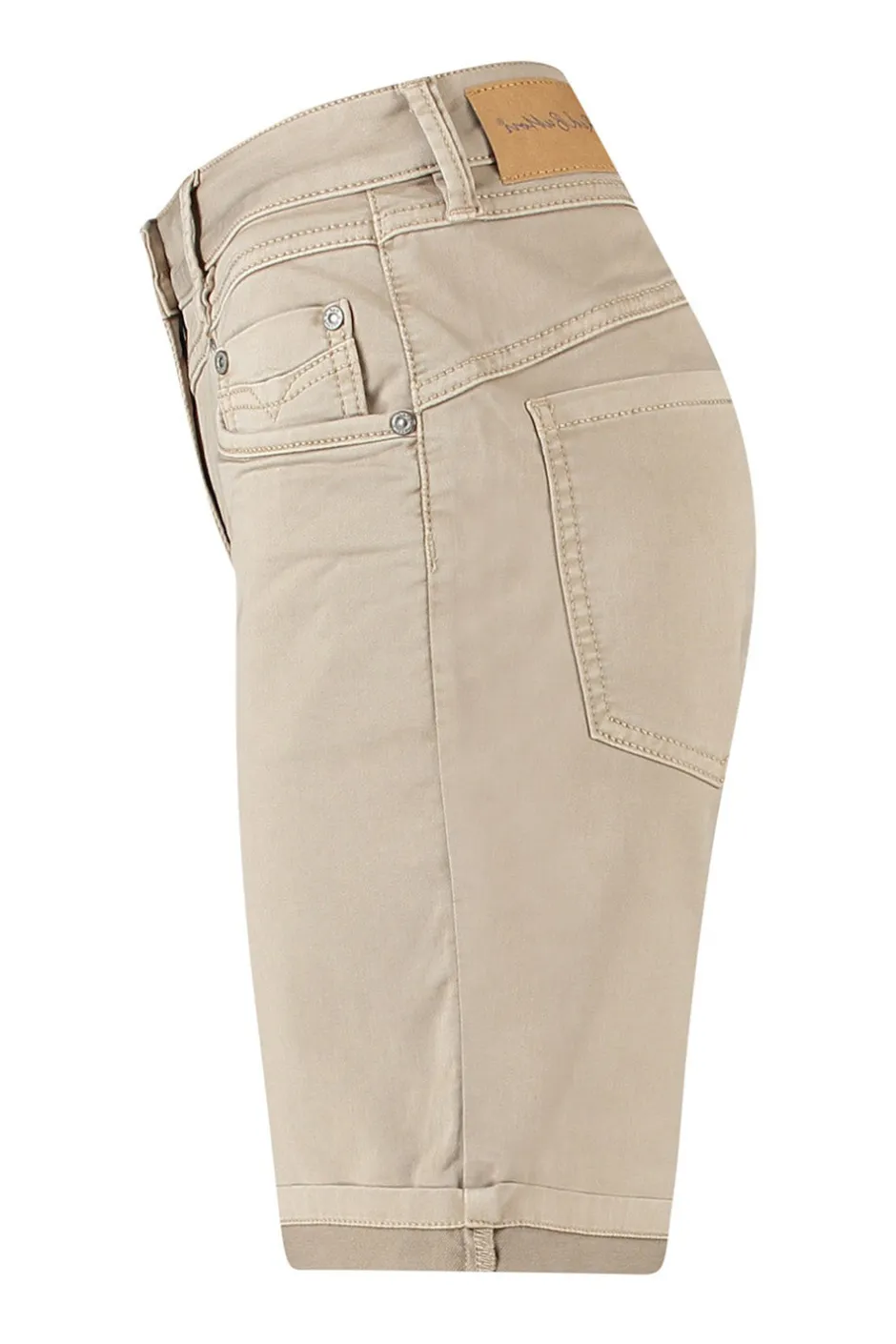 Todella joustavat ja mukavat naisten kangasshortsit, viisitaskumalli, edessä vetoketju ja nappi, normaali vyötärön korkeus.
