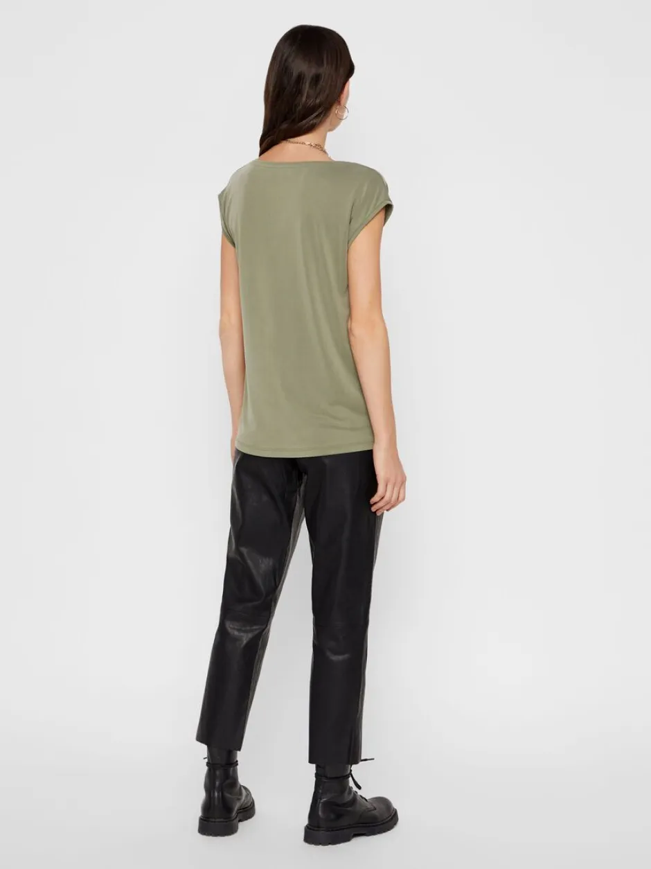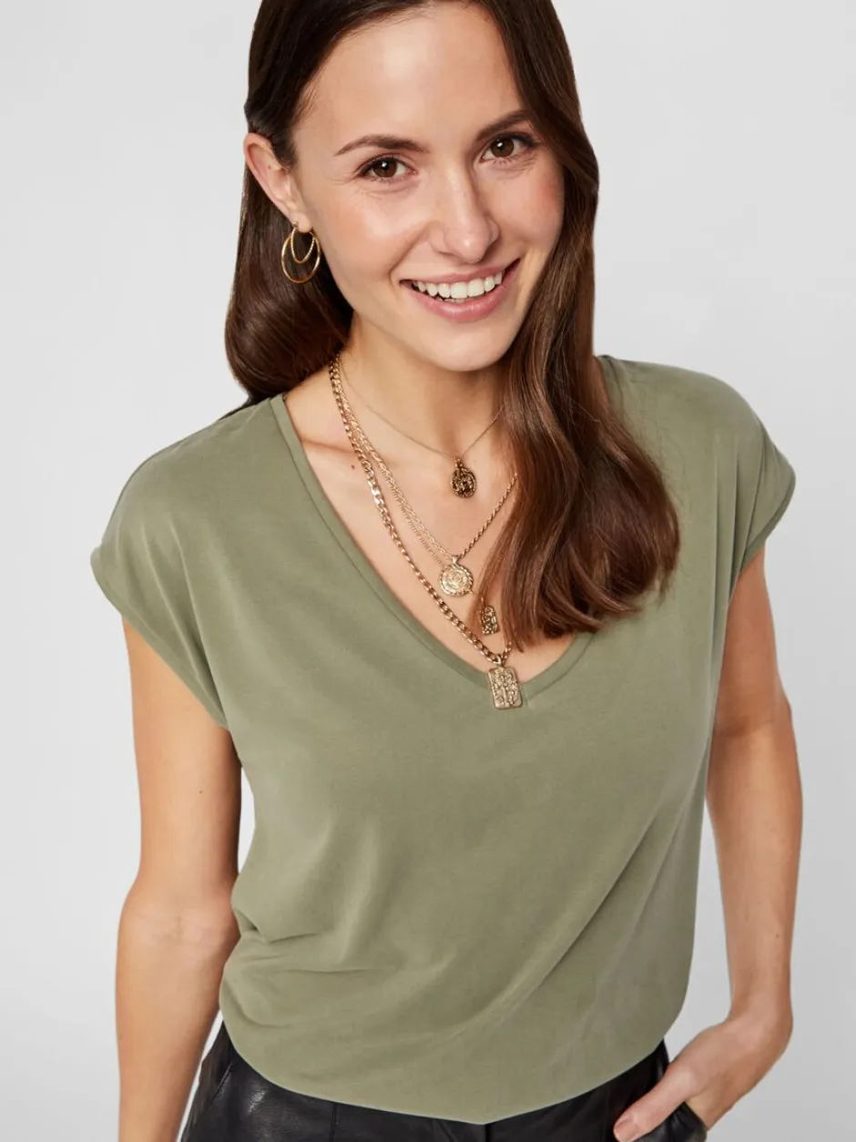 Pieces T-paidassa on joustava ja miellyttävä laatu. Pääntienä kaunis V. Suora istuvuus.