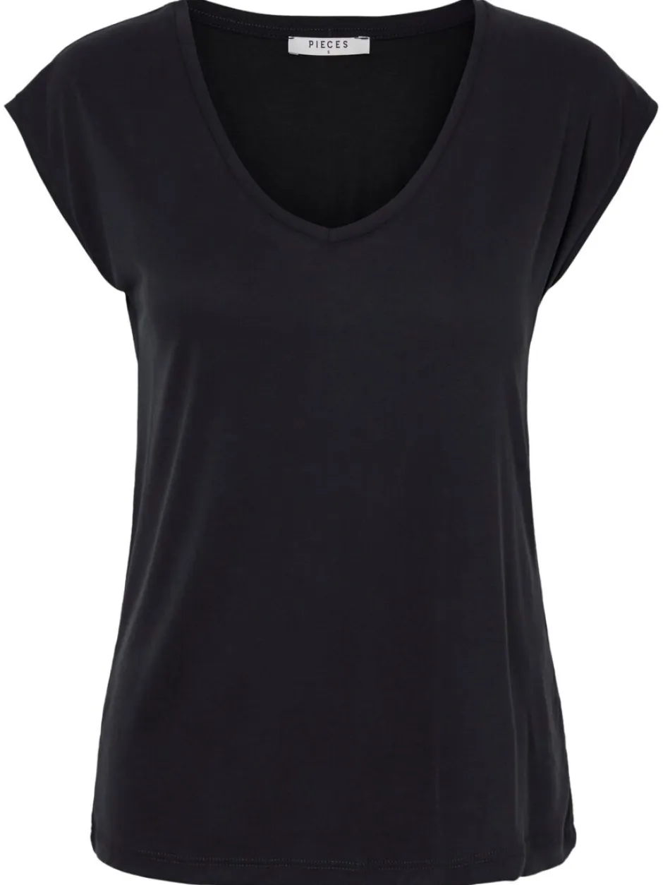 Pieces T-paidassa on joustava ja miellyttävä laatu. Pääntienä kaunis V. Suora istuvuus..