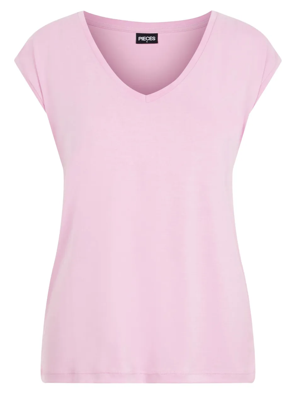 Pieces T-paidassa on joustava ja miellyttävä laatu. Pääntienä kaunis V. Suora istuvuus.
