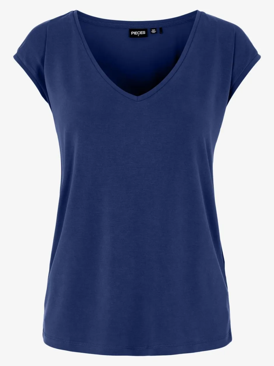 Pieces T-paidassa on joustava ja miellyttävä laatu. Pääntienä kaunis V. Suora istuvuus.