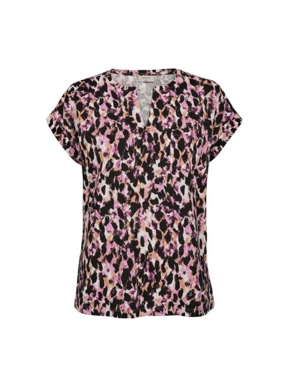 Tässä Freequentin lyhythihaisessa puserossa yhdistyy trendikäs design ja rento käyttömukavuus. Pusero on valmistettu pehmeästä ja hengittävästä materiaalista, ja sen rento leikkaus tekee siitä täydellisen arkeen tai vapaalle. Katseenvangitseva leopardihenkinen kuosi yhdistää mustaa, valkoista, pinkkiä ja hiekan sävyjä, luoden näyttävän mutta helposti yhdisteltävän ilmeen. V-kaula-aukko ja hihat ilman erillisiä saumoja viimeistelevät modernin siluetin.