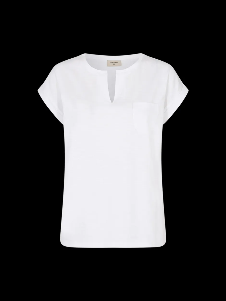 Naisten lyhythihainen t-paita. Pyöreä pääntie, edessä pieni halkio. Hihansuiss akäänteet.