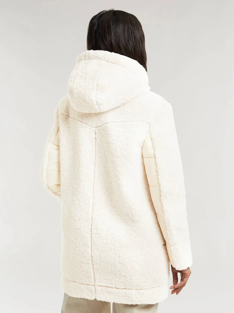 Tämä pehmeä teddy-takki on talven ehdoton hankinta! Kankaan, hupun ja ohuen toppauksen ansiosta pysyt lämpimänä.