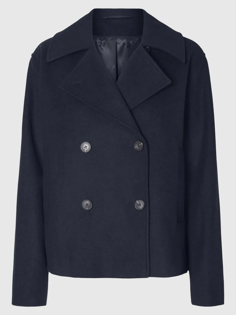 Muodikas lyhyt villakangastakki kaksirivisellä napituksella
