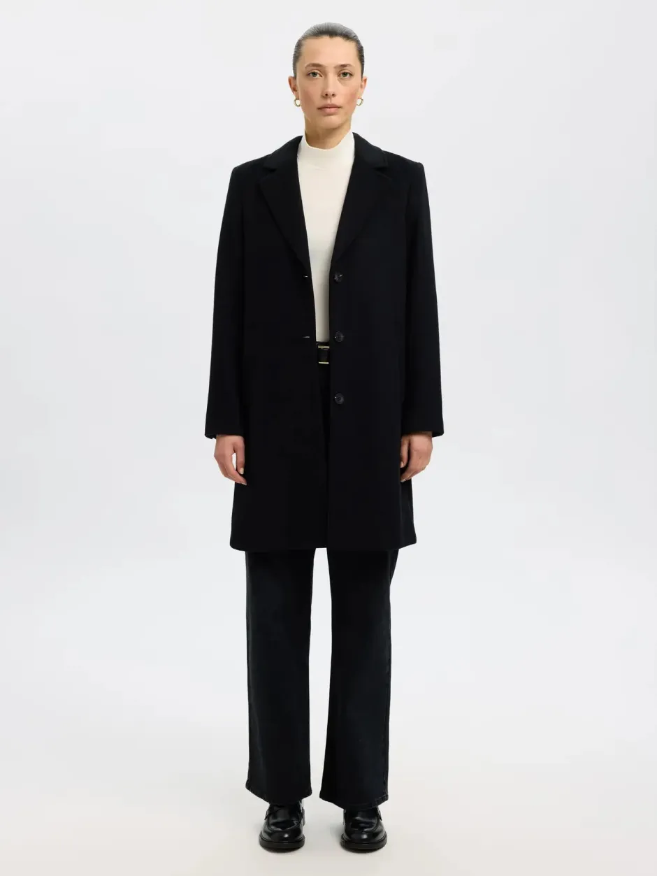 Tämä villasekoitetuinen takki on klassikko jokaisen naisen vaatekaapissa. Lämpimästä villasekoitteesta valmistettu takki on yhtä aikaa strukturoitu ja viimeistelty. Yhdistä se räätälöityjen housujen ja nahkaisten ballerinakenkien kanssa.