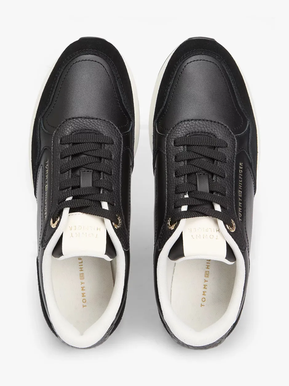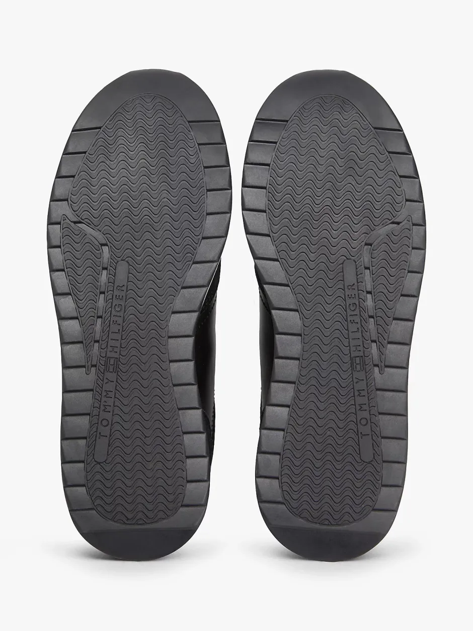 Nämä Tommy Hilfiger -tennarit yhdistävät retrohenkisen juoksukengän muotokielen ja modernit materiaalit tyylikkääksi kokonaisuudeksi. Päällinen on valmistettu nappanahasta, jossa on mokka- ja monogrammikuvioituja yksityiskohtia, jotka tuovat syvyyttä ja tekstuuria ilmeeseen. EVA-ulkopohja tekee kengistä kevyet ja mukavat jokapäiväiseen käyttöön. Pebble grain -viimeistely nauhakujassa, metalliset yläreiät ja TH-monogrammi kantapäässä viimeistelevät ikonisen lookin.