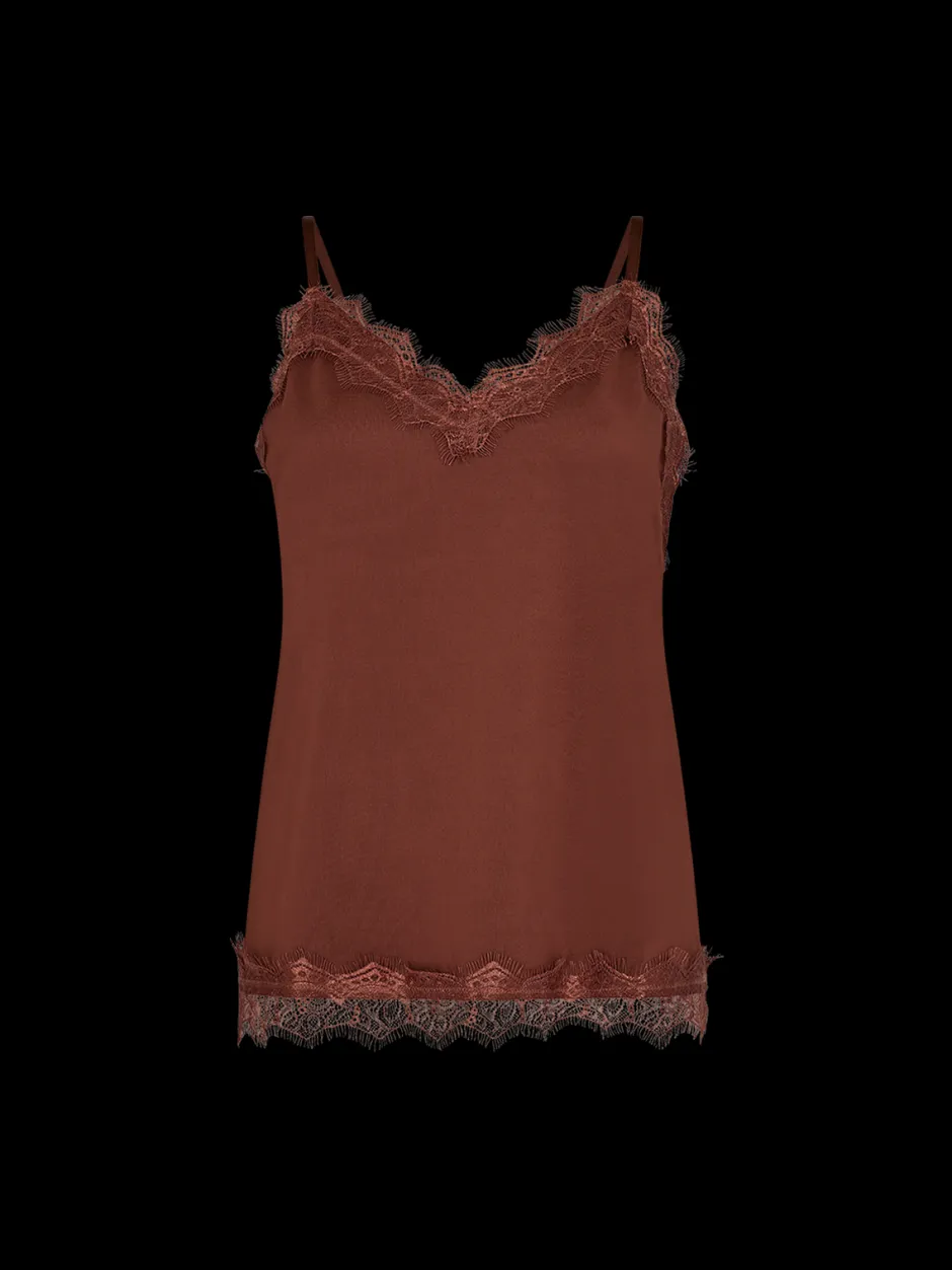 Monikäyttöinen alustoppi säädettävillä olkaimilla ja pitsisomisteella. Toimii kivasti esim. neuleiden ja erilaisten mekkojen alla.