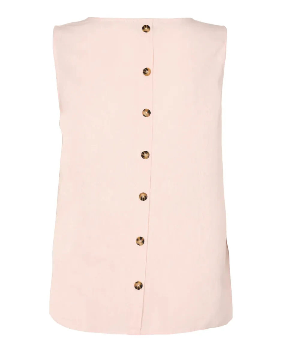 Naisten ihanan kevyt pellavainen toppi, jossa koristeena nappilista selässä. Toppi on hihaton ja siinä on pyöreä pääntie. Topissa on kaunis, väljästi laskeutuva malli. Monikäyttöinen toppi on helppo yhdistää asuun kuin asuun!