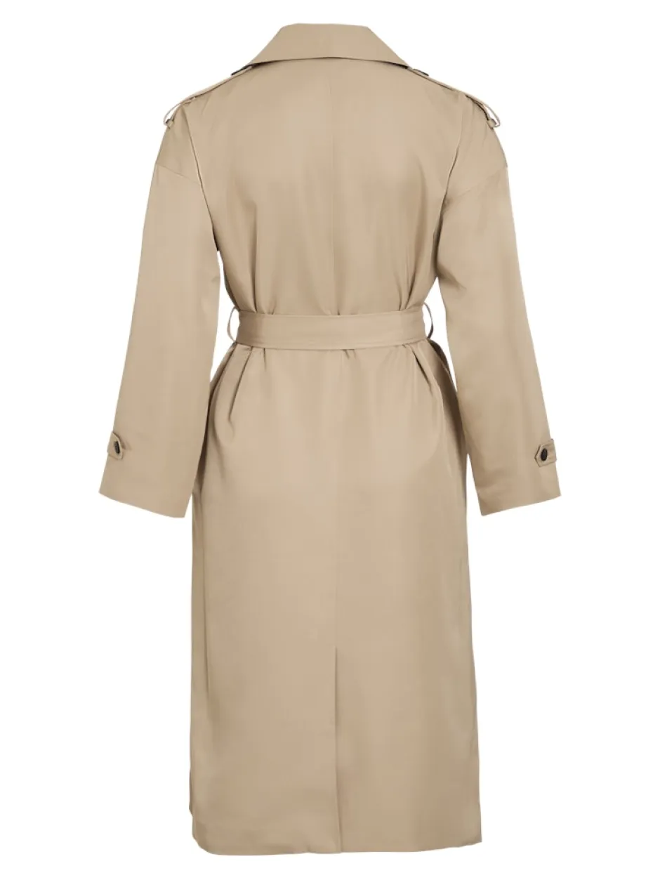 • Pitkä trenssi • Kaksirivinen • Vyötäröltä sidottava, irrotettava kangasvyö • Vyödetalji hihoissa ja hartioilla • Halkiodetalji • Kaksi taskua • Regular fit • Pituus: 115 cm koossa 38 • Hihan pituus: 62 cm koossa 38.