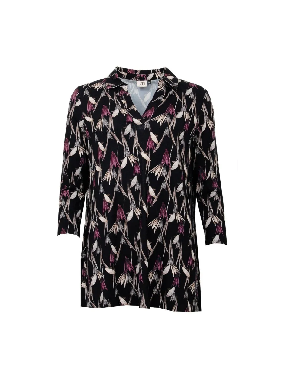 Kaunis kukkakuosillinen tunika v-pääntiellä ja vajaamittaisella kapealla hihalla. Viskoosisekoite on kevyt ja pehmeä päällä. Tunika sopii hyvin rennosti neuleiden alle tai hieman juhlavampaankin tilaisuuteen.