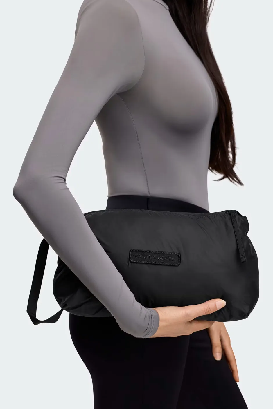 Pakattavissa vasempaan sisätaskuun; muuttuu kiristettäväksi kantopussiksi säädettävällä olkahihnalla