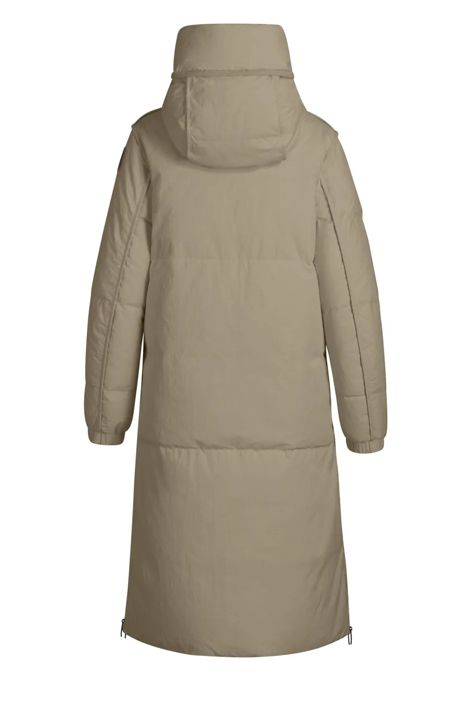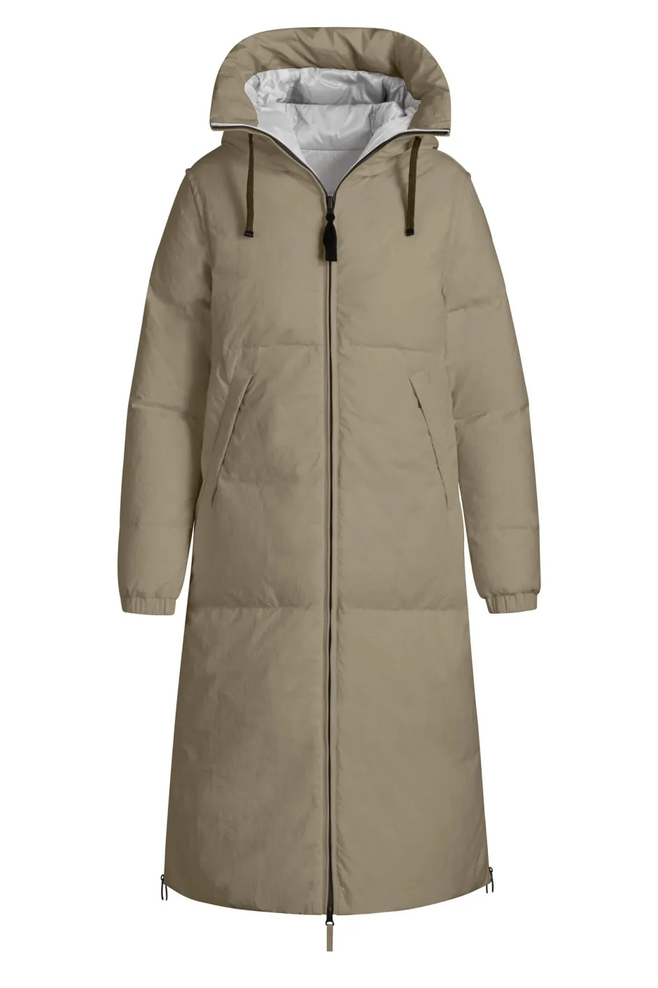 Parajumpersin käännettävä untuvatakki, joka on pehmeä, lämmin ja valmistettu laadukkaista materiaaleista. Täydellinen takki talveen – ja mikä parasta, kääntämällä takin saat luotua samalla takilla uuden ilmeen! Takissa on iso, kiristettävä huppu, vetoketjulliset taskut edessä ja hihansuissa pehmeät resorit. Helmassa vetoketjut, jotka avaamalla saa lisää liikkuvuutta.