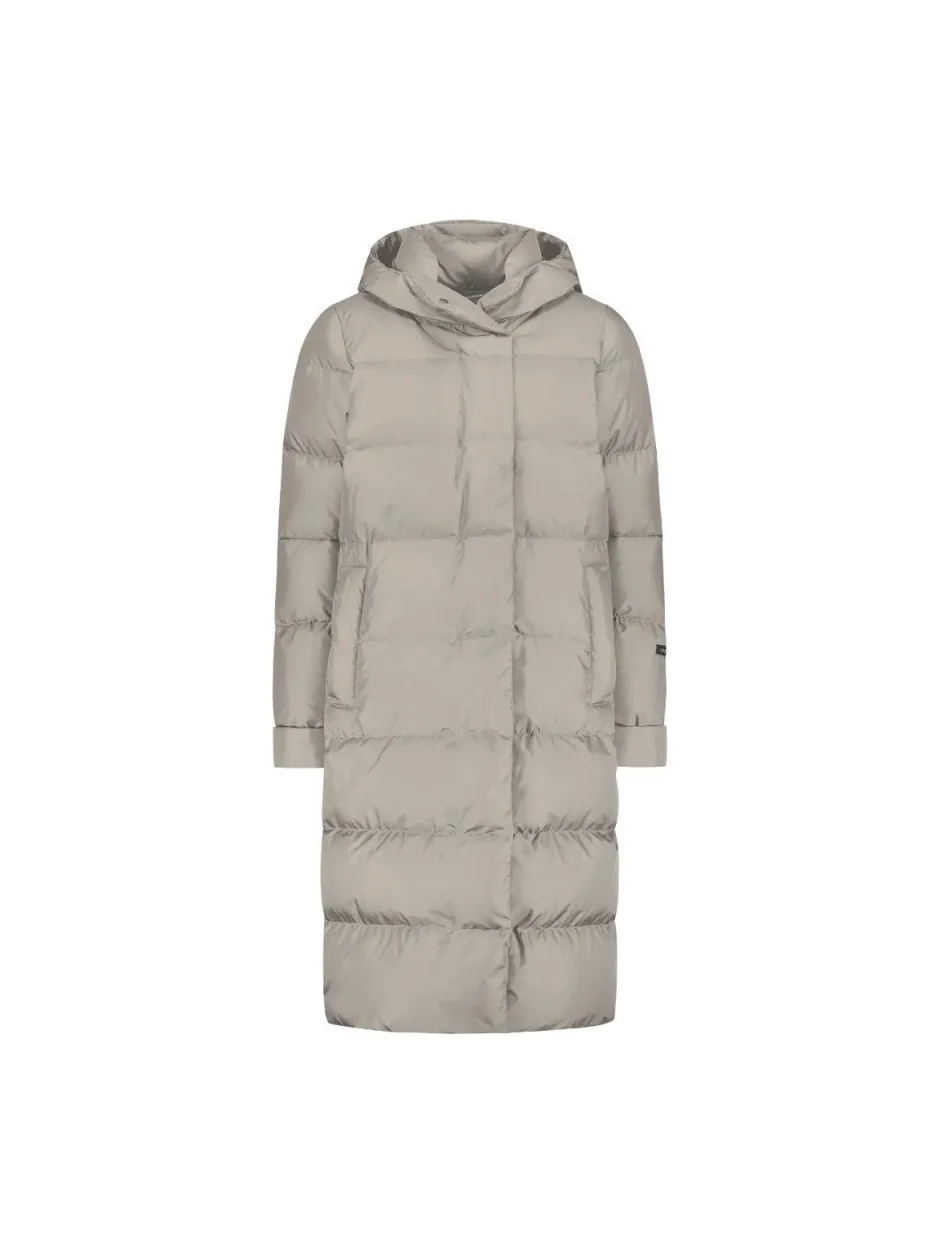 Takki on naisellisen siro, modernista suorasta linjasta huolimatta. Siinä on suuri, hurmaavan lämmin huppu, joka on sekä rento että käytännöllinen. Takin täyte on 100-prosenttista vastuullisesti tuotettua untuvaa.